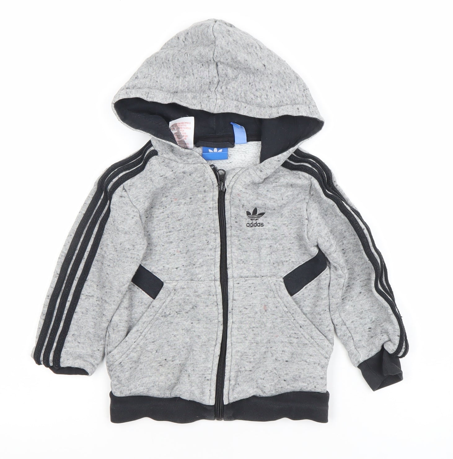 Adidas Boys Grey Full Zip Hoodie 3-4 Years Cotton Blend Logo Design