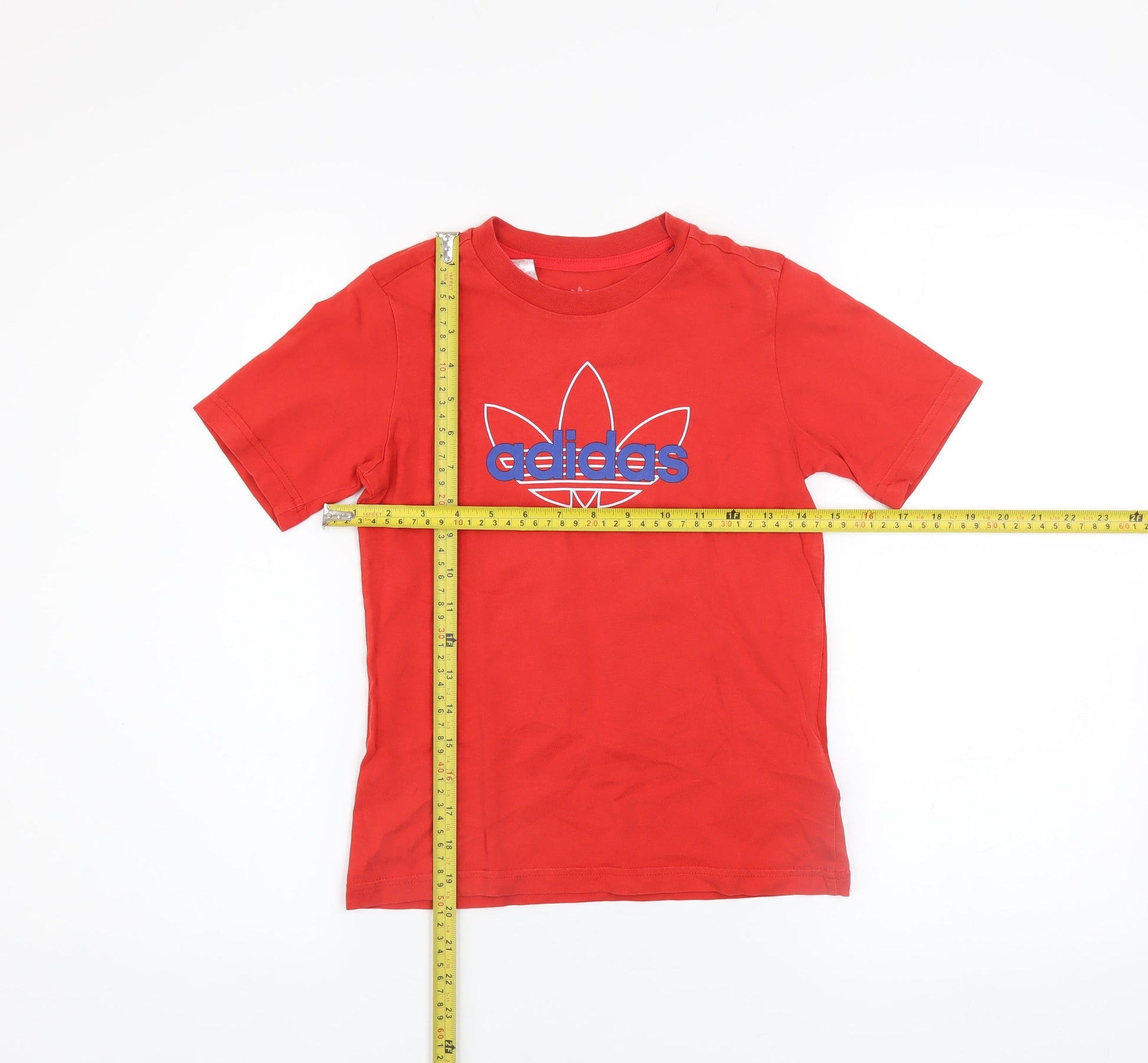 Adidas Boys Red 6-7 Years Short Sleeve Cotton Logo Sports T-Shirt