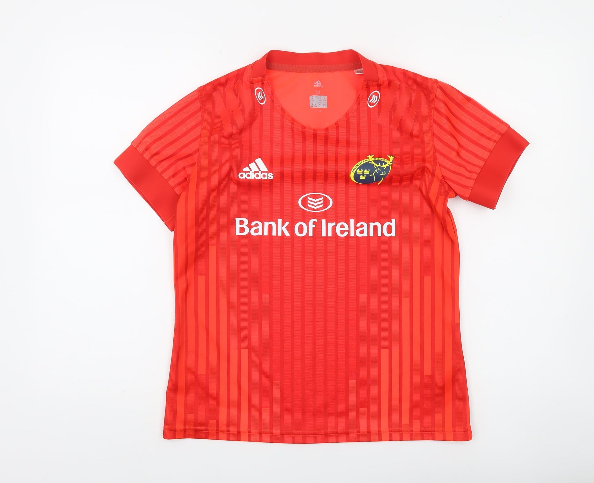 Adidas Boys Red Munster Rugby Jersey T-Shirt M Athletic Fit Short Sleeve