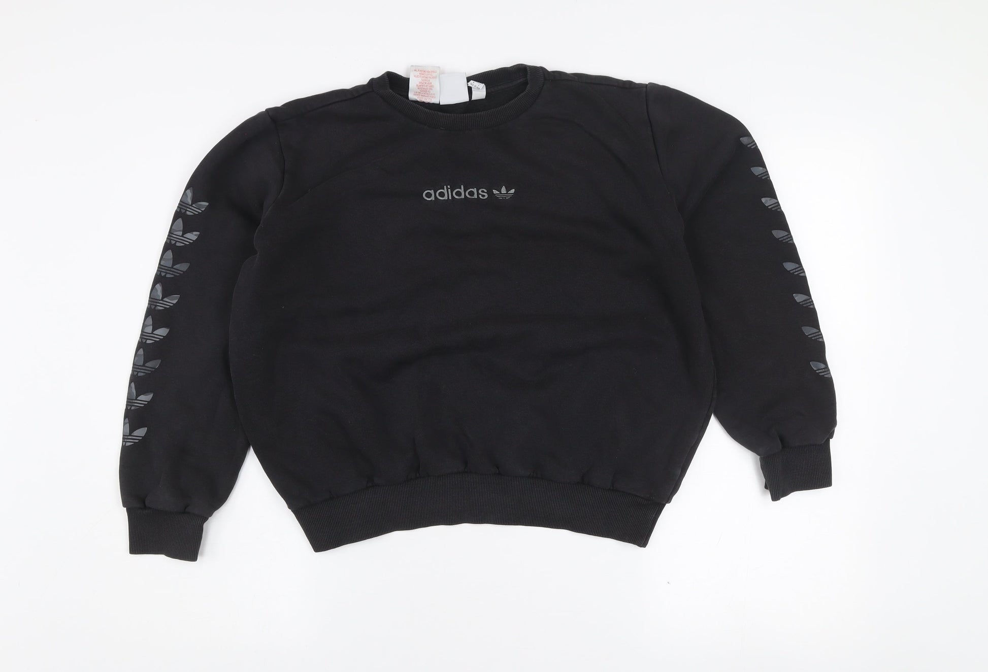 adidas Girls Black 13-14 Years Pullover Sweatshirt with Logo Detailing
