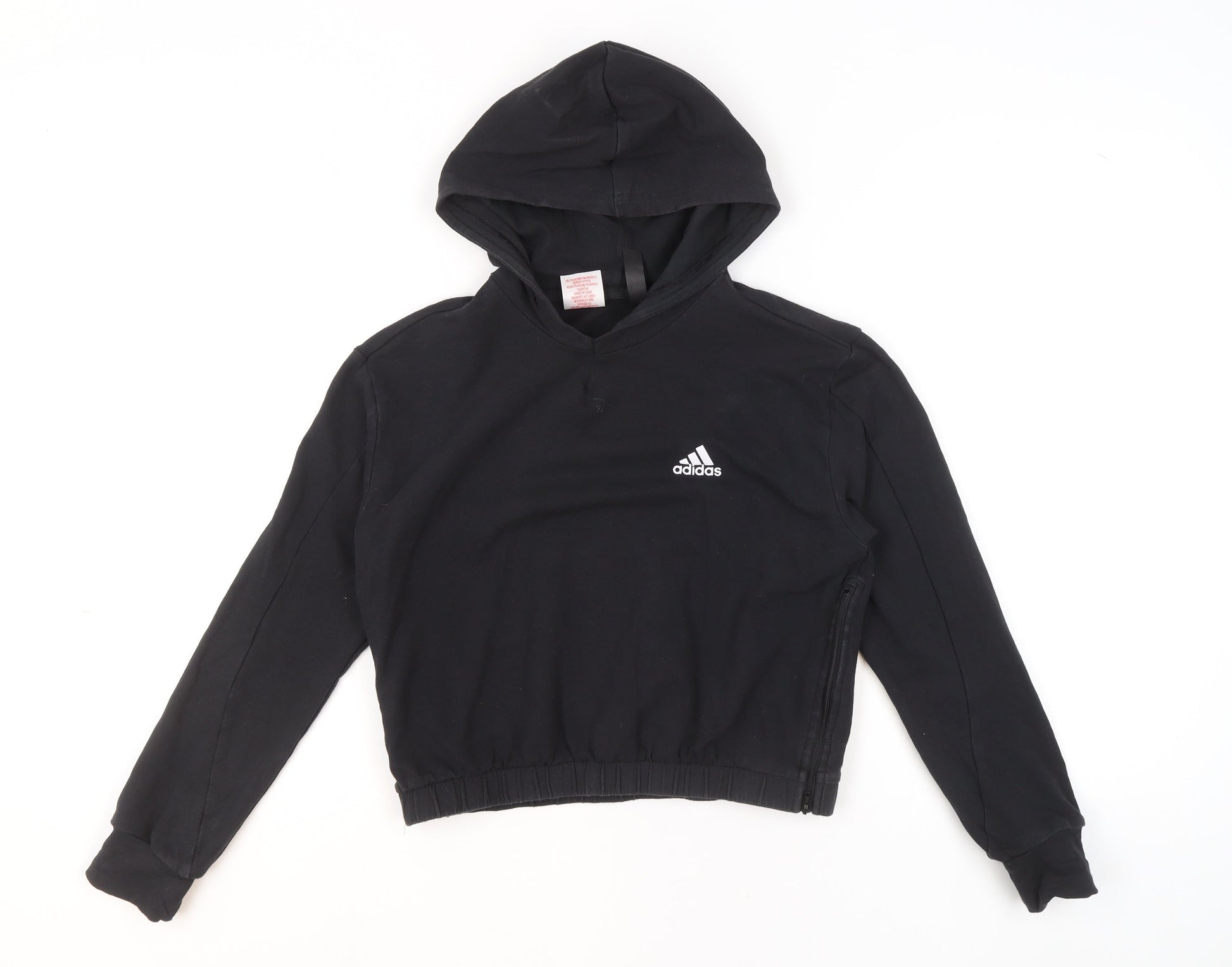 Adidas Girls Black Hoodie 11-12 Years Pullover Sportswear Cotton Blend