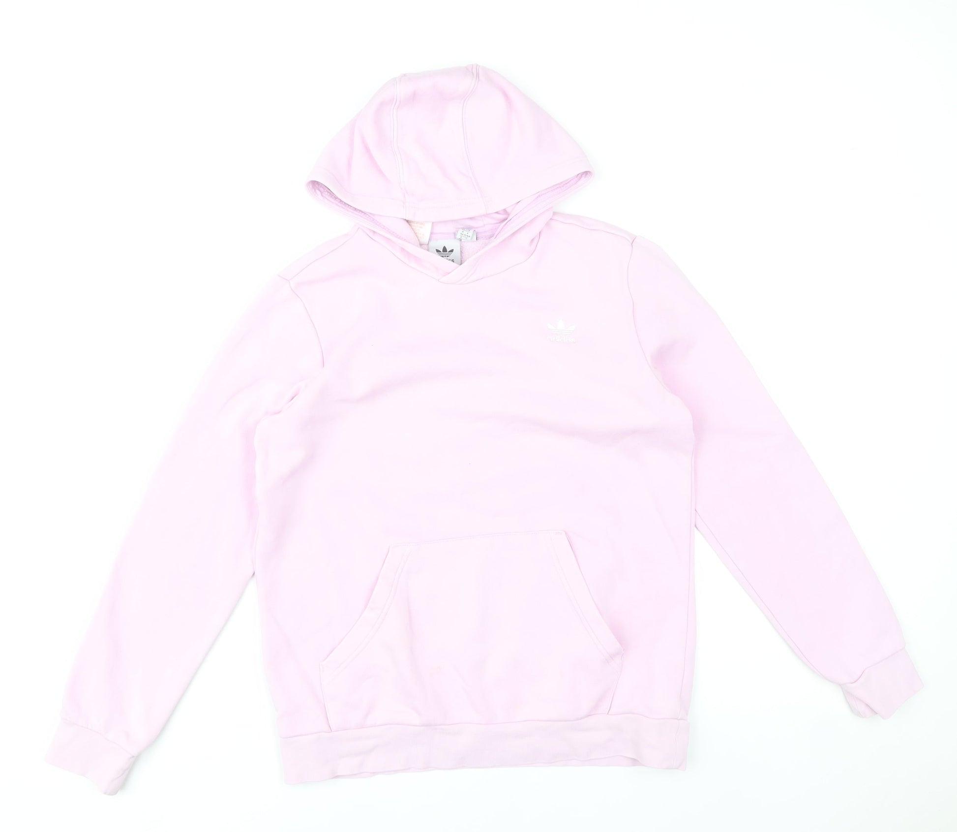 Adidas Girls Pink Hoodie 13-14 Years Pullover Fleece Cotton Blend