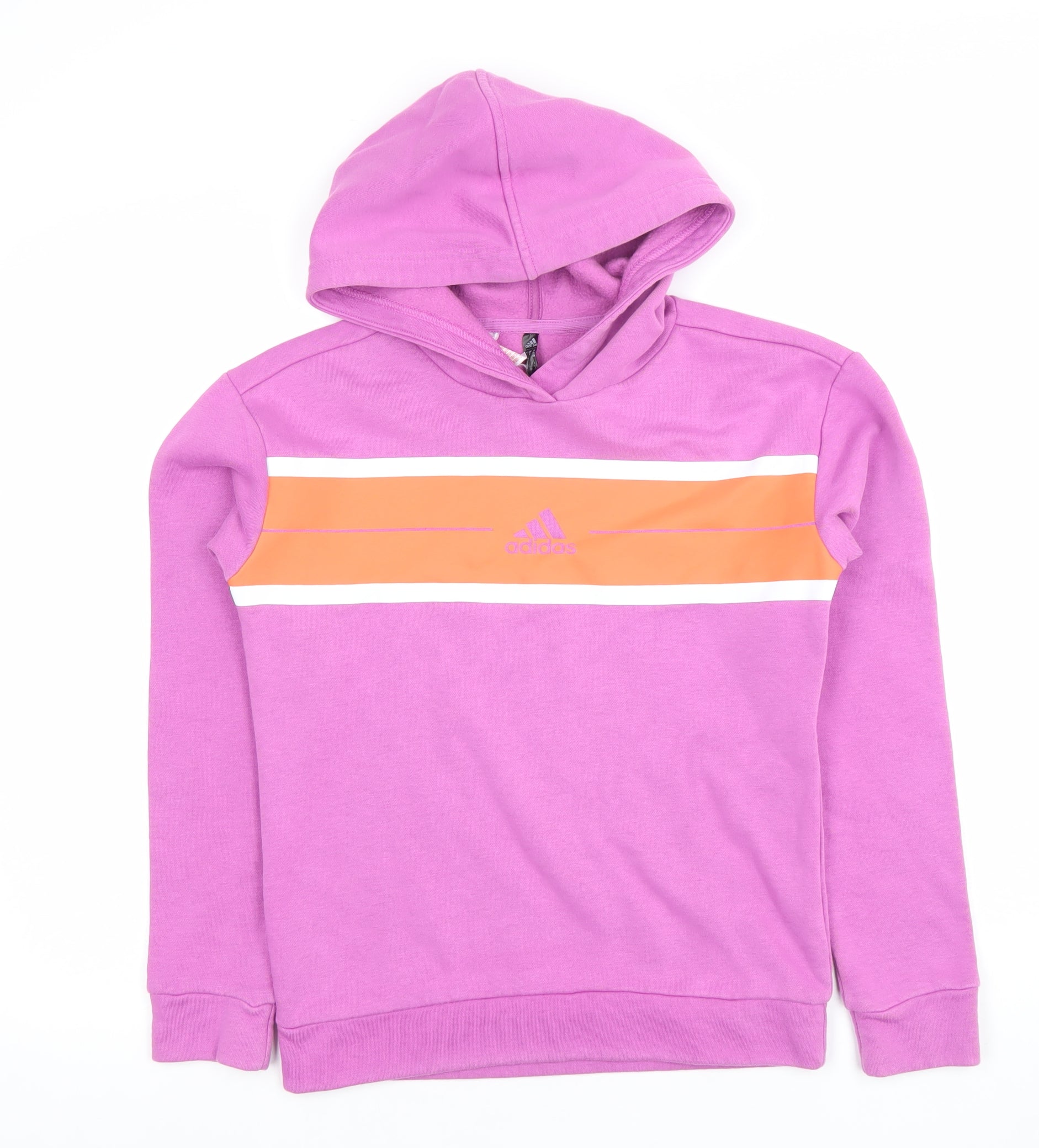 Adidas Girls Pink Pullover Hoodie 11-12 Years Colourblock Logo Fleece