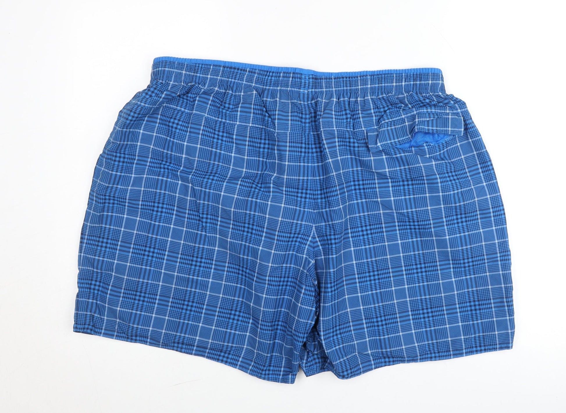 Adidas Men Blue Check 2XL Swim Shorts Elastic Waist Quick Dry