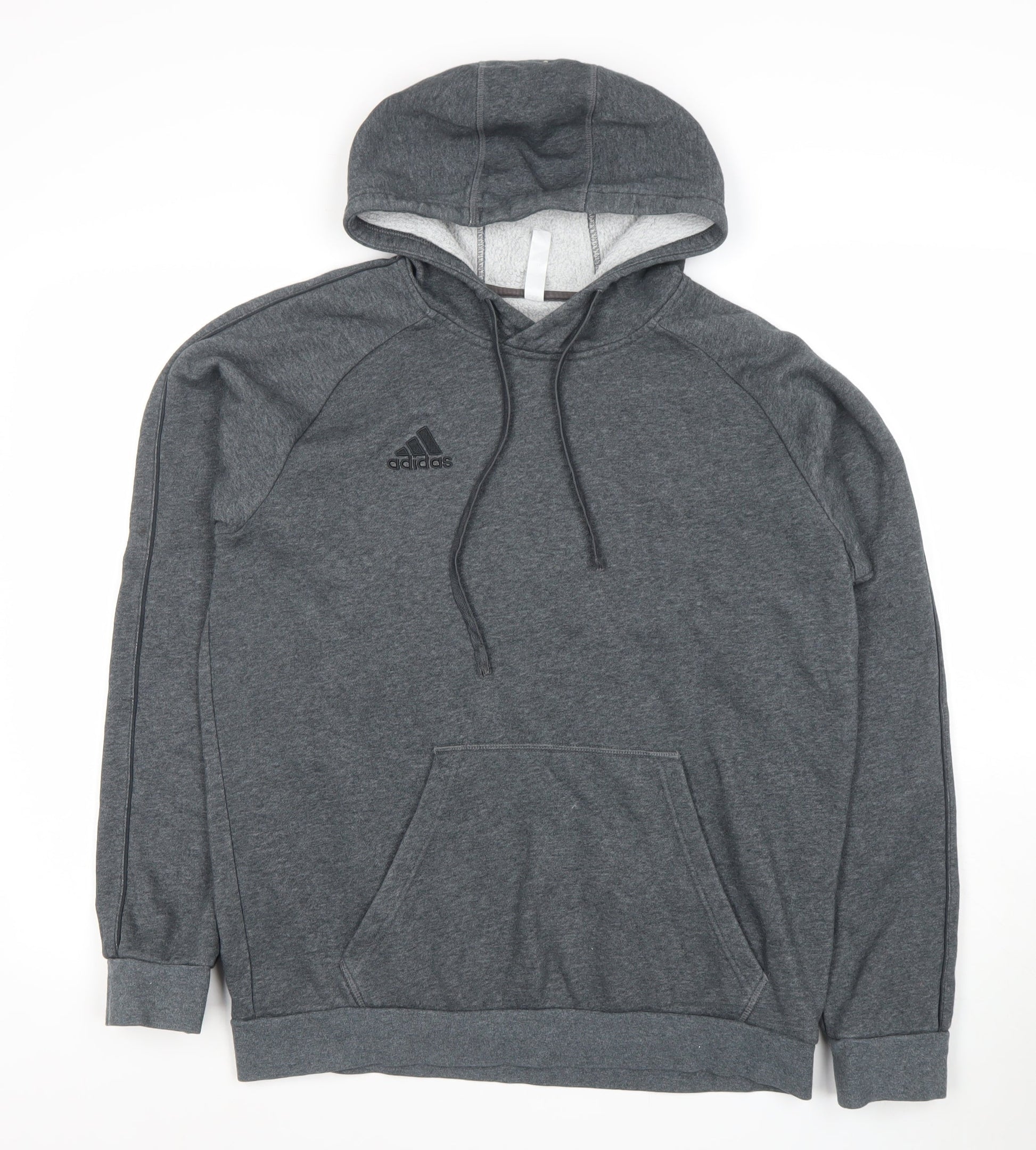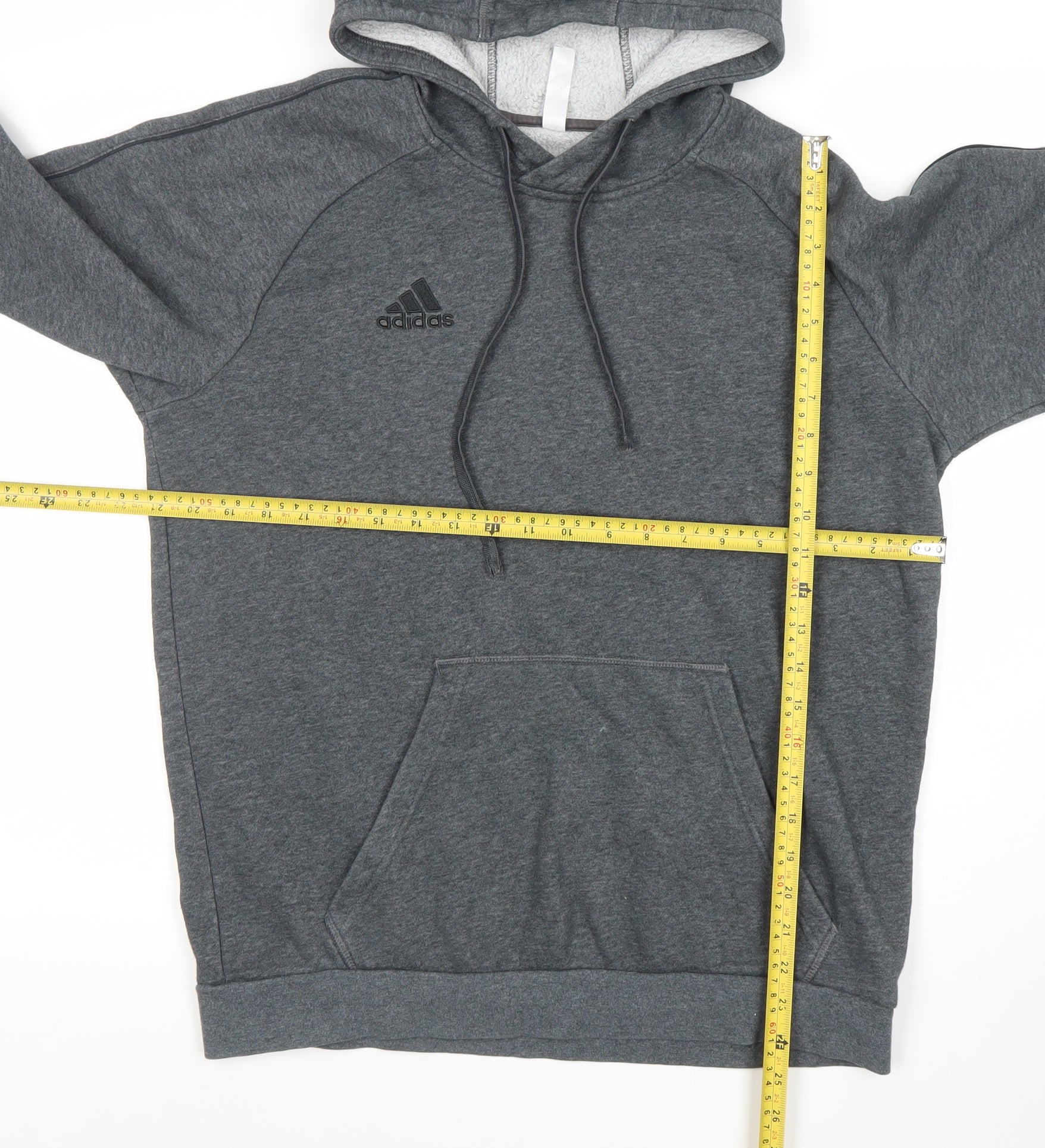 Adidas Men Grey Pullover Hoodie Medium Regular Fit Logo Cotton Blend