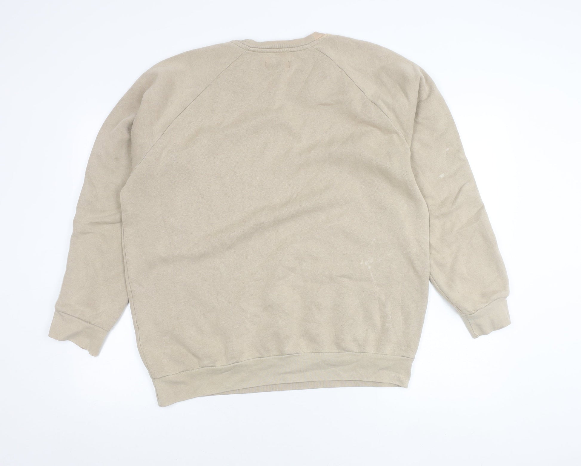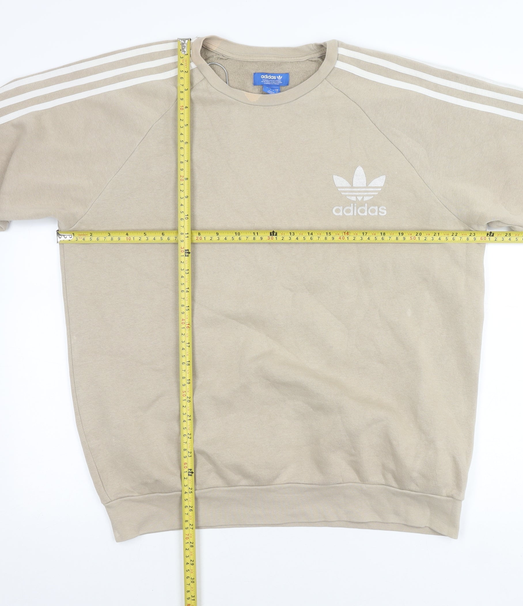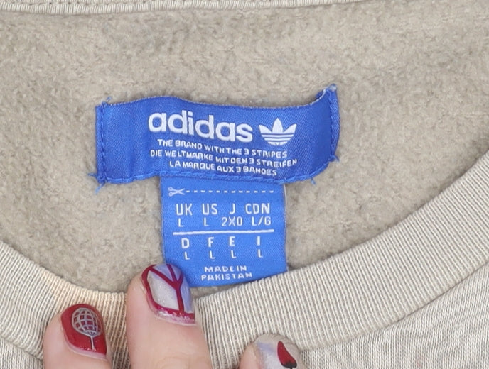 Adidas Men’s Beige Crew Neck Pullover Sweatshirt L Logo Long Sleeve