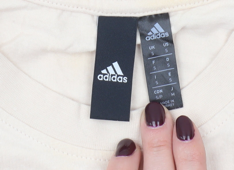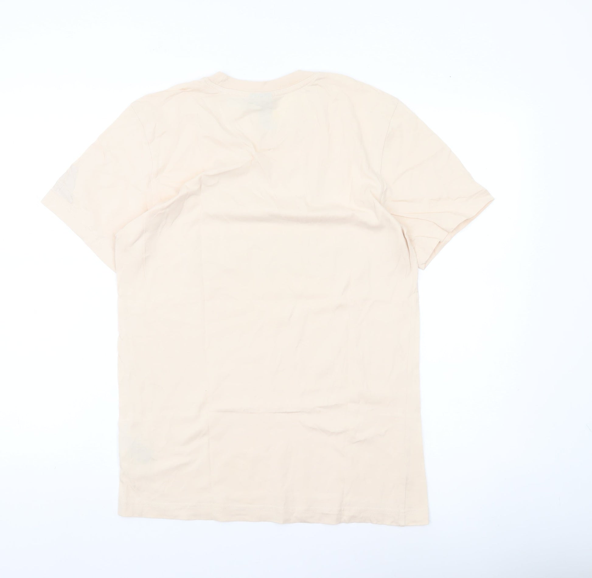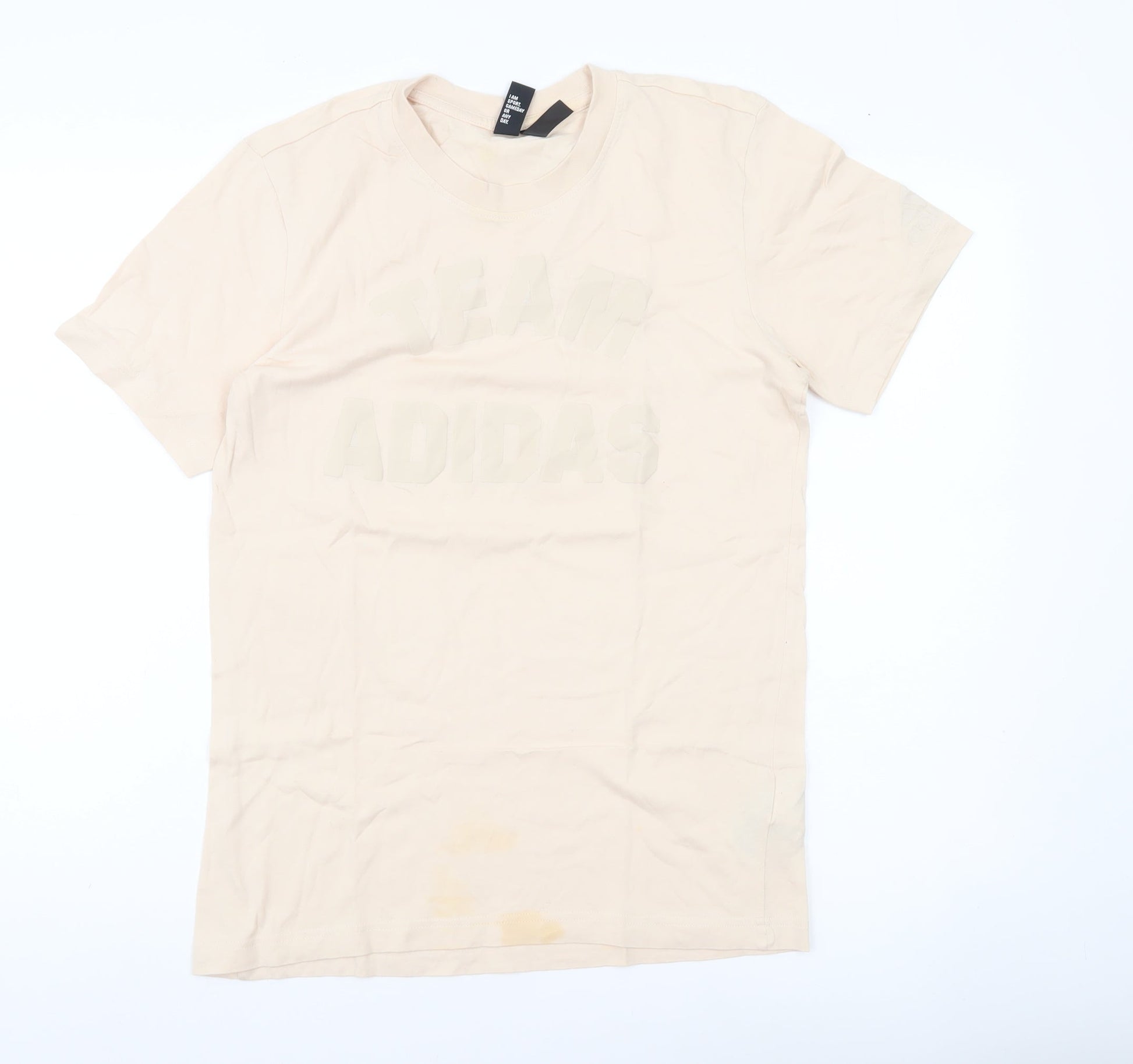 Adidas Men’s Beige Small Graphic Logo T-Shirt Cotton Short Sleeve