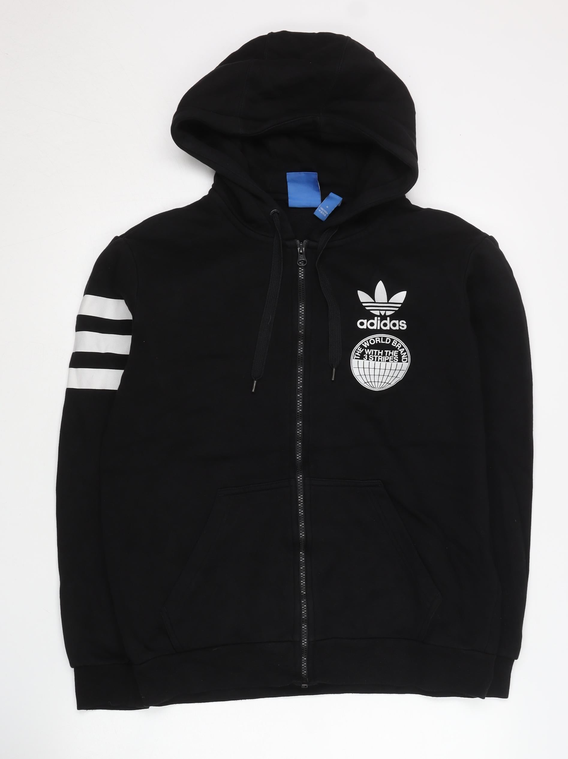 Adidas Men’s Black Full Zip Hoodie L Sports Graphic Cotton Blend
