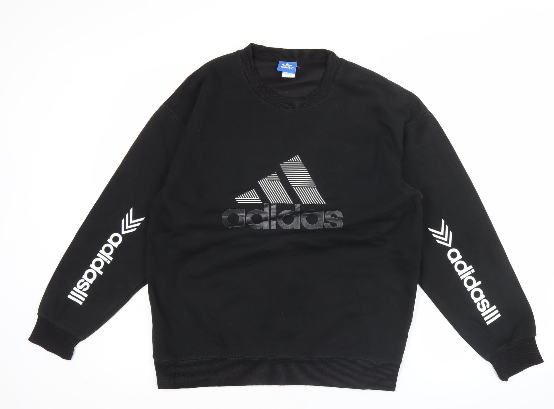Adidas Men’s Black Logo Pullover Sweatshirt L Long Sleeve Crew Neck