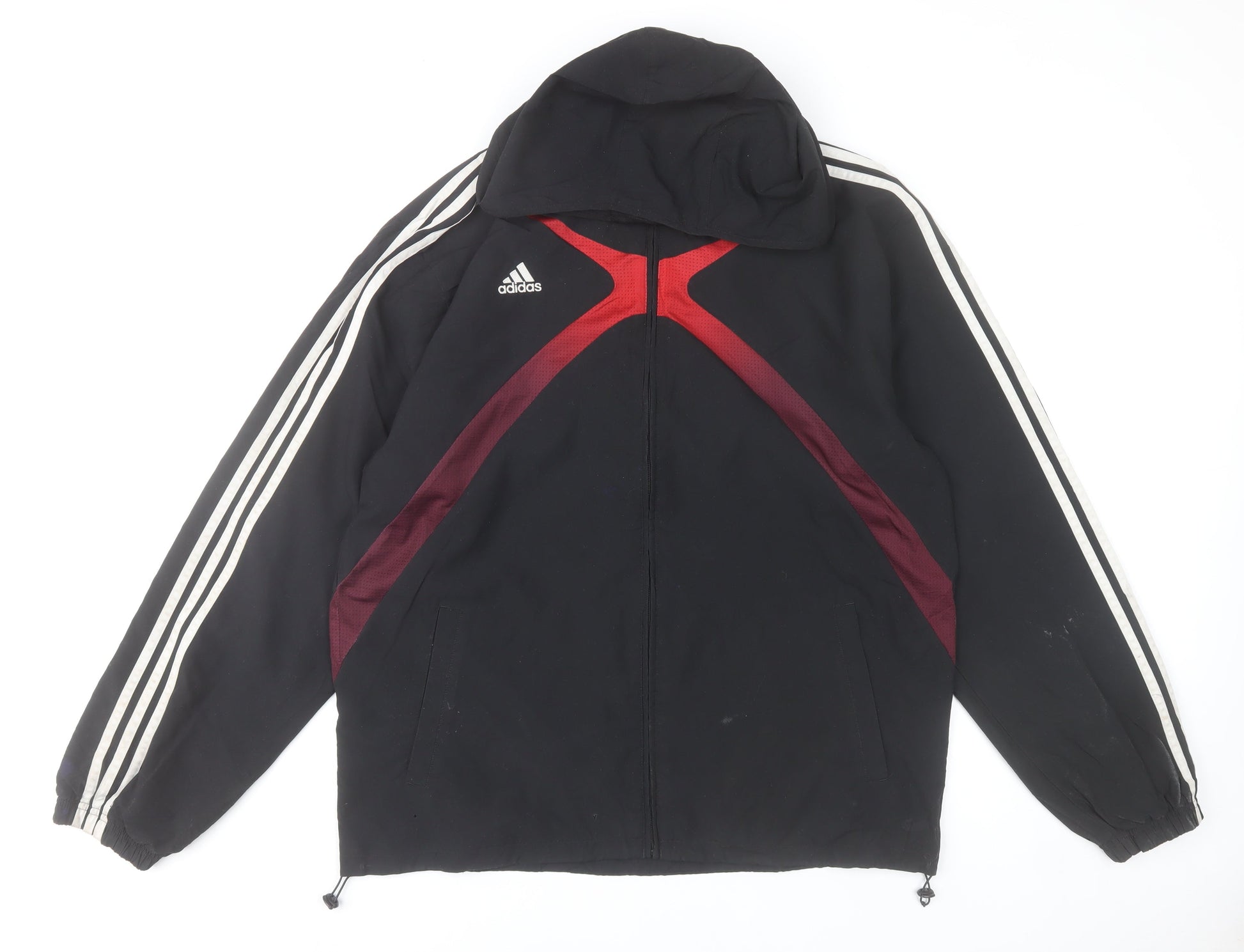 Adidas Men’s Black Polyester Windbreaker Jacket Size M Hooded Sports