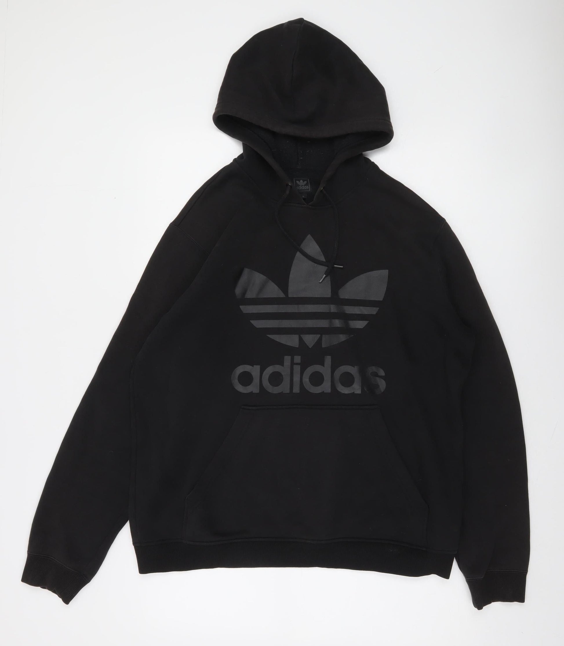 Adidas Men’s Black Pullover Hoodie Medium Fleece Logo Sweatshirt