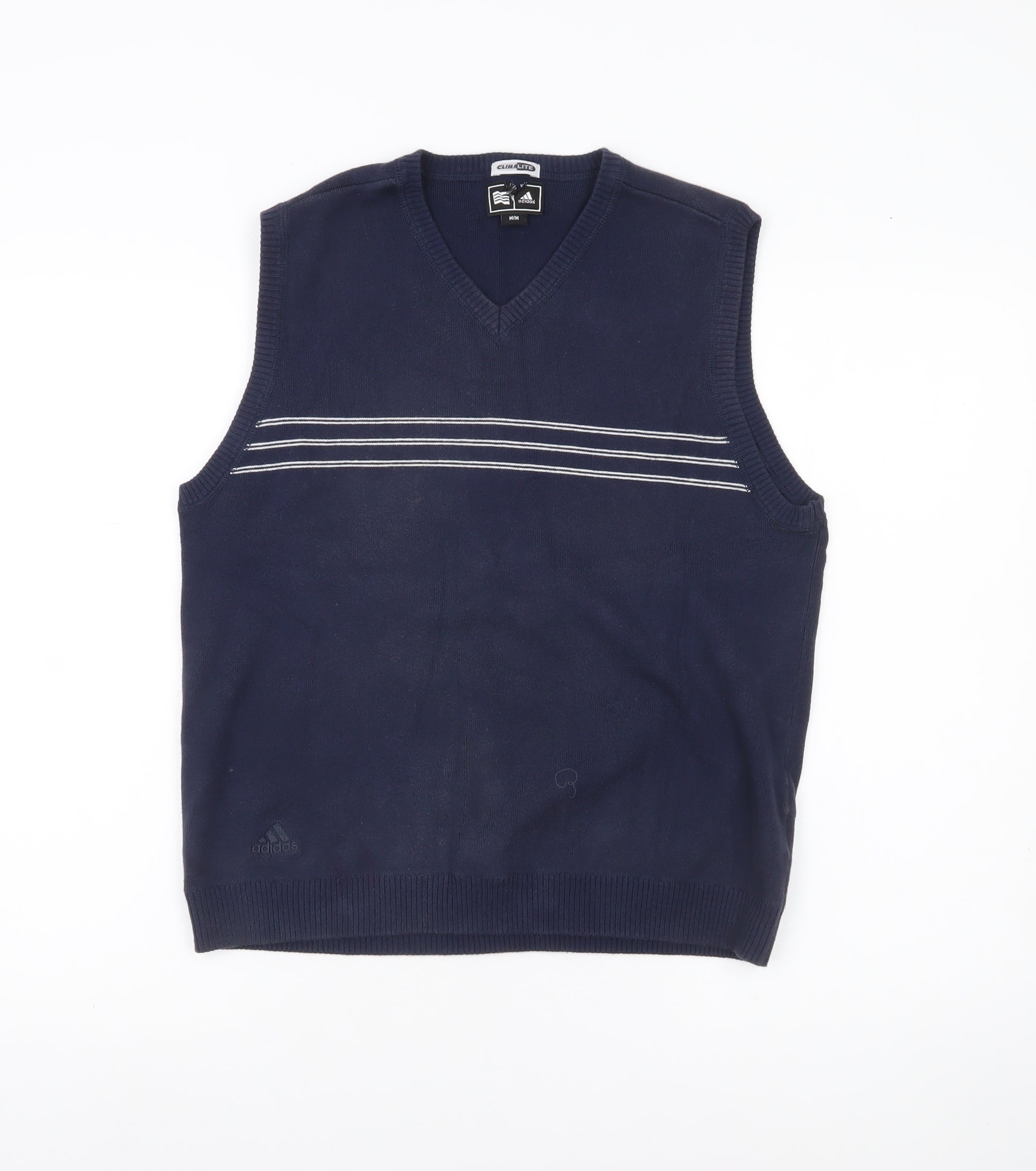 Adidas Men’s Blue V-Neck Sleeveless Vest Jumper Size M Cotton Blend