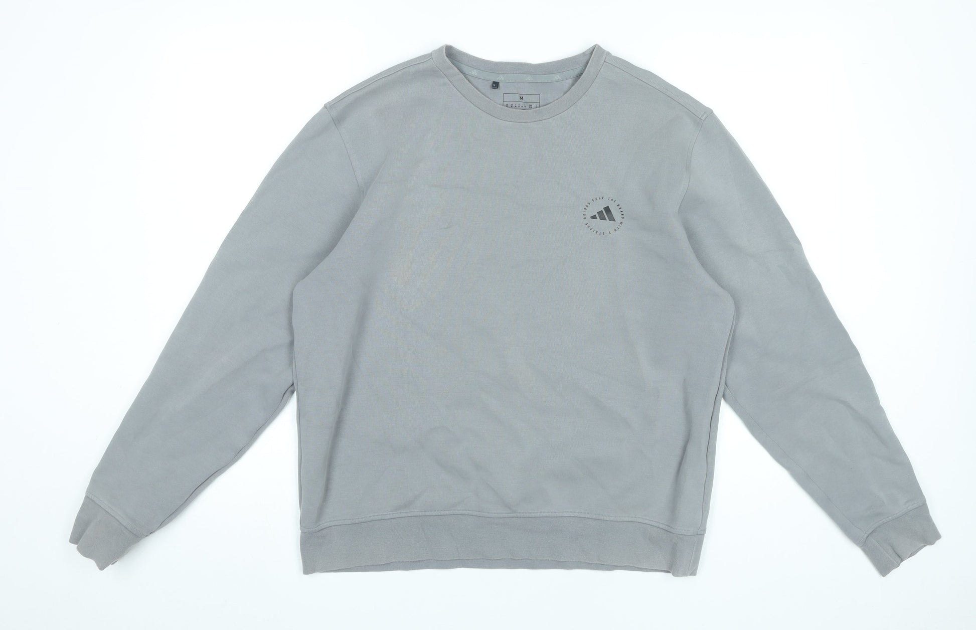 Adidas Men’s Grey Crew Neck Sweatshirt M Logo Pullover Sportswear