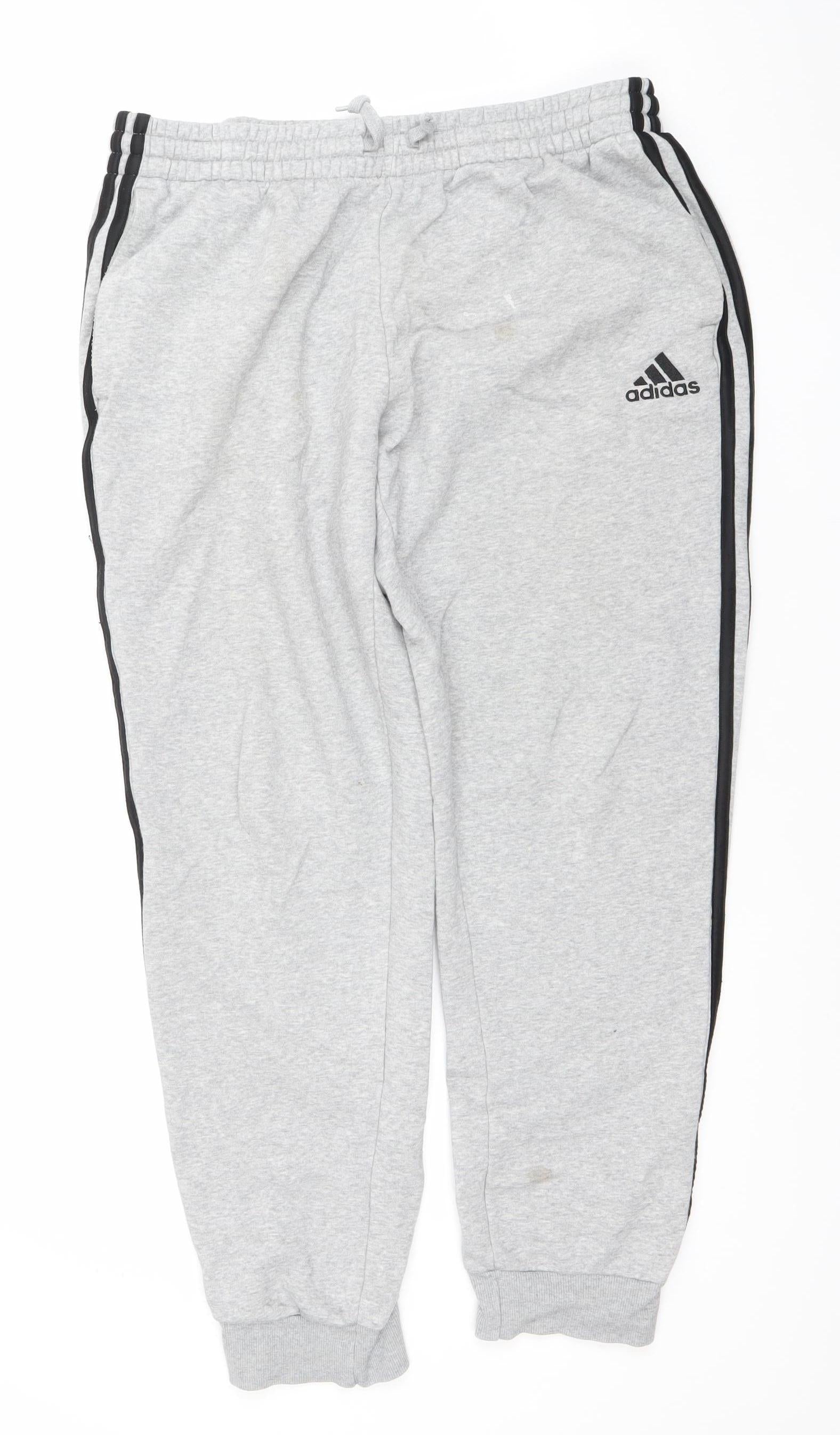 Adidas Men’s Grey L Sweatpants Joggers in Fleece with Side Stripes