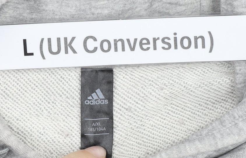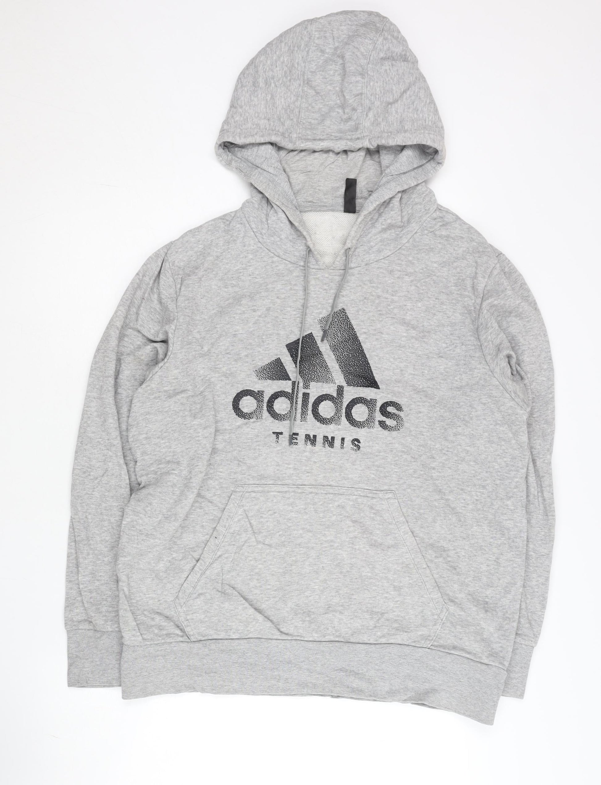 Adidas Men’s Grey Pullover Hoodie L Logo Sports Tennis Sweatshirt