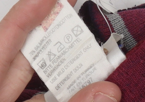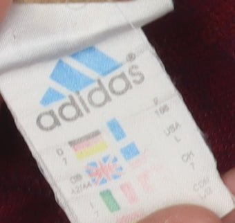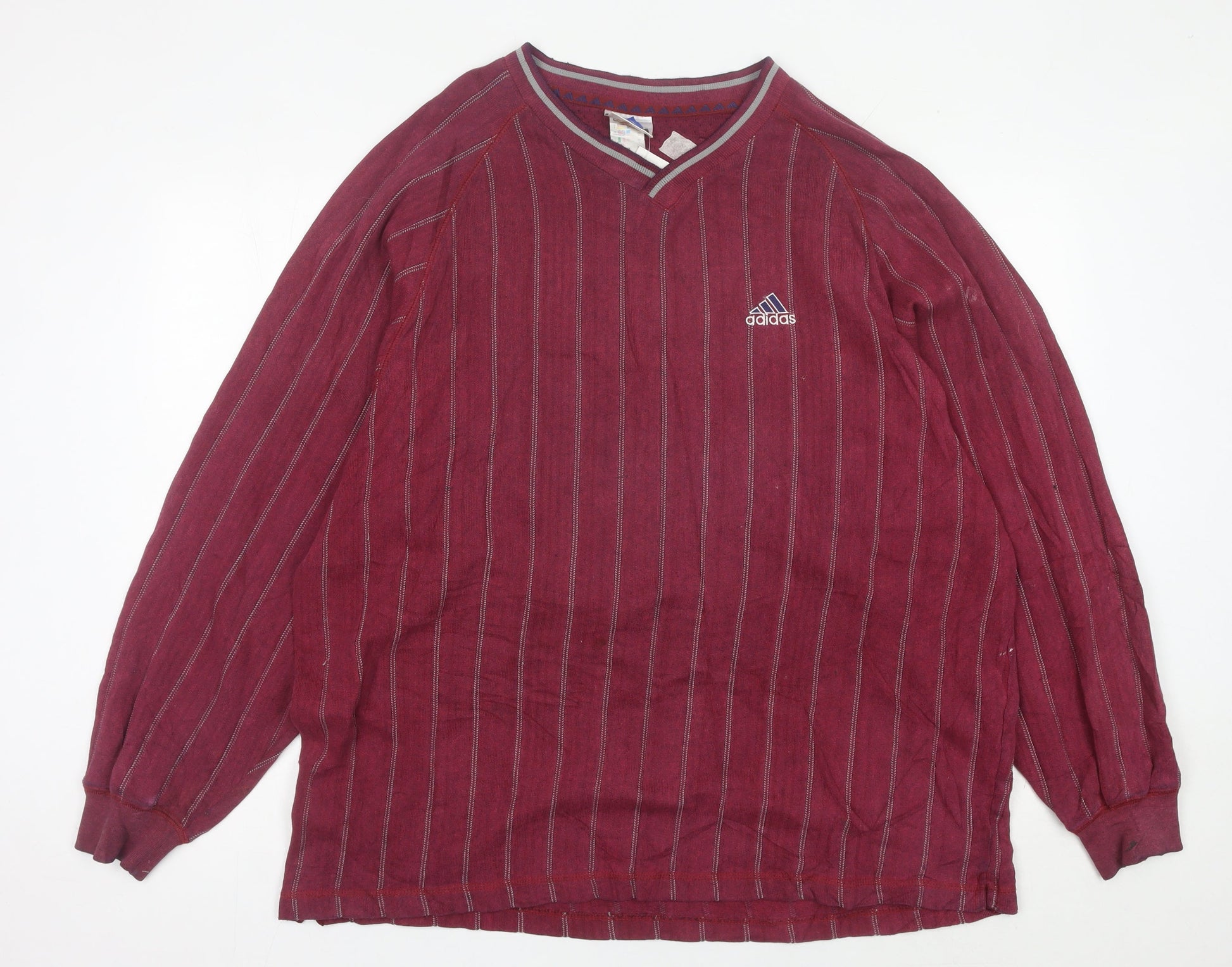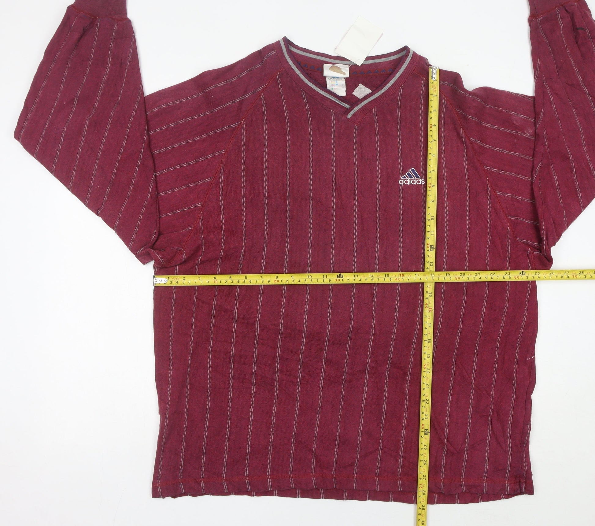 Adidas Men’s Red Striped Sweatshirt L V-Neck Long Sleeve Vintage
