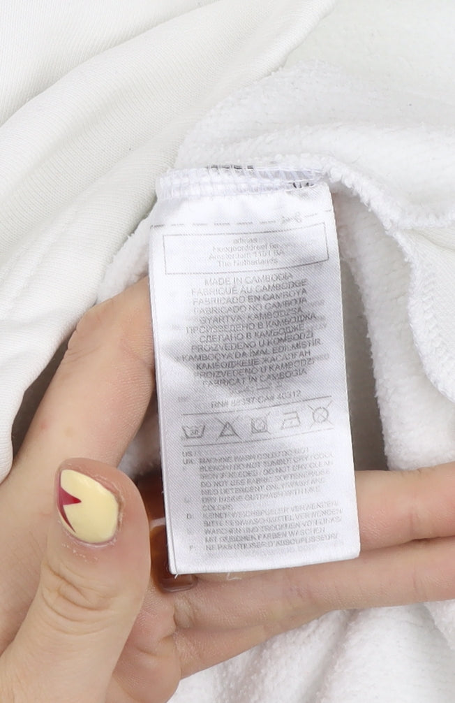 adidas Men’s White Pullover Hoodie L Fleece Logo Sweatshirt