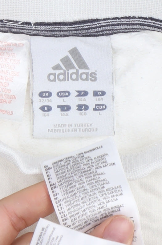 Adidas Men’s White Pullover Sweatshirt L Logo Crew Neck Sportswear