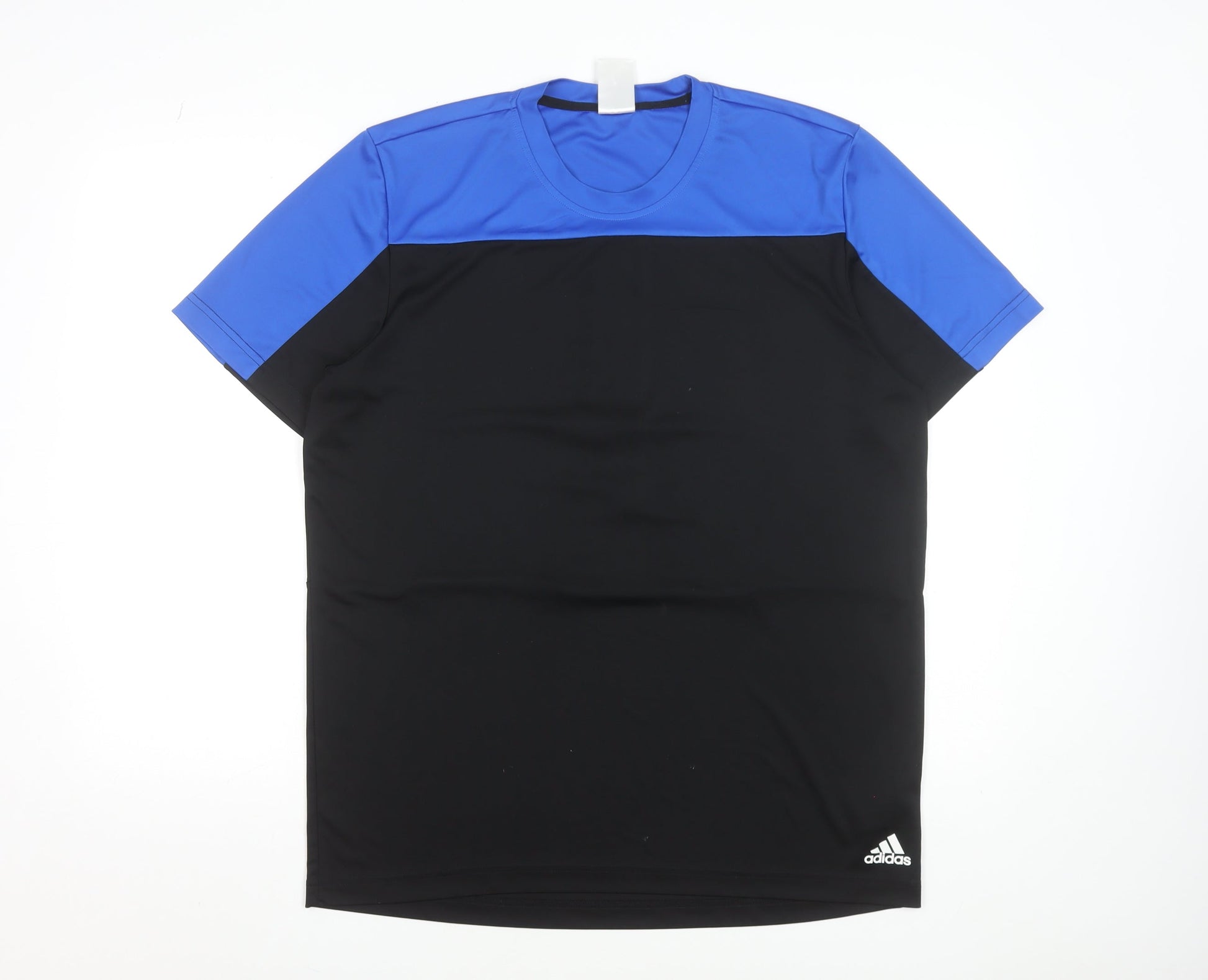 Adidas Men's Black Blue Colourblock Sports T-Shirt Size L
