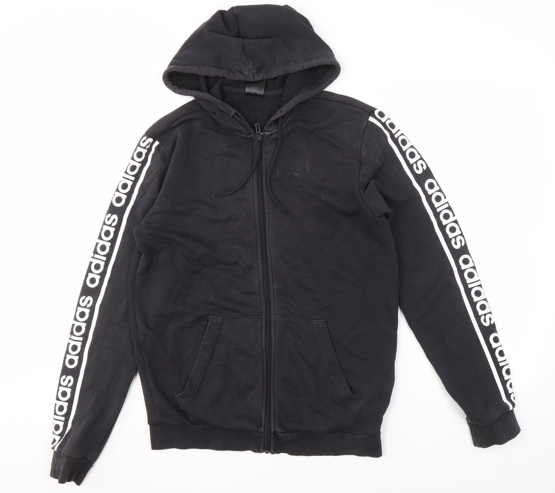 Adidas Men's Black Full Zip Hoodie, Size M, Logo Sleeves