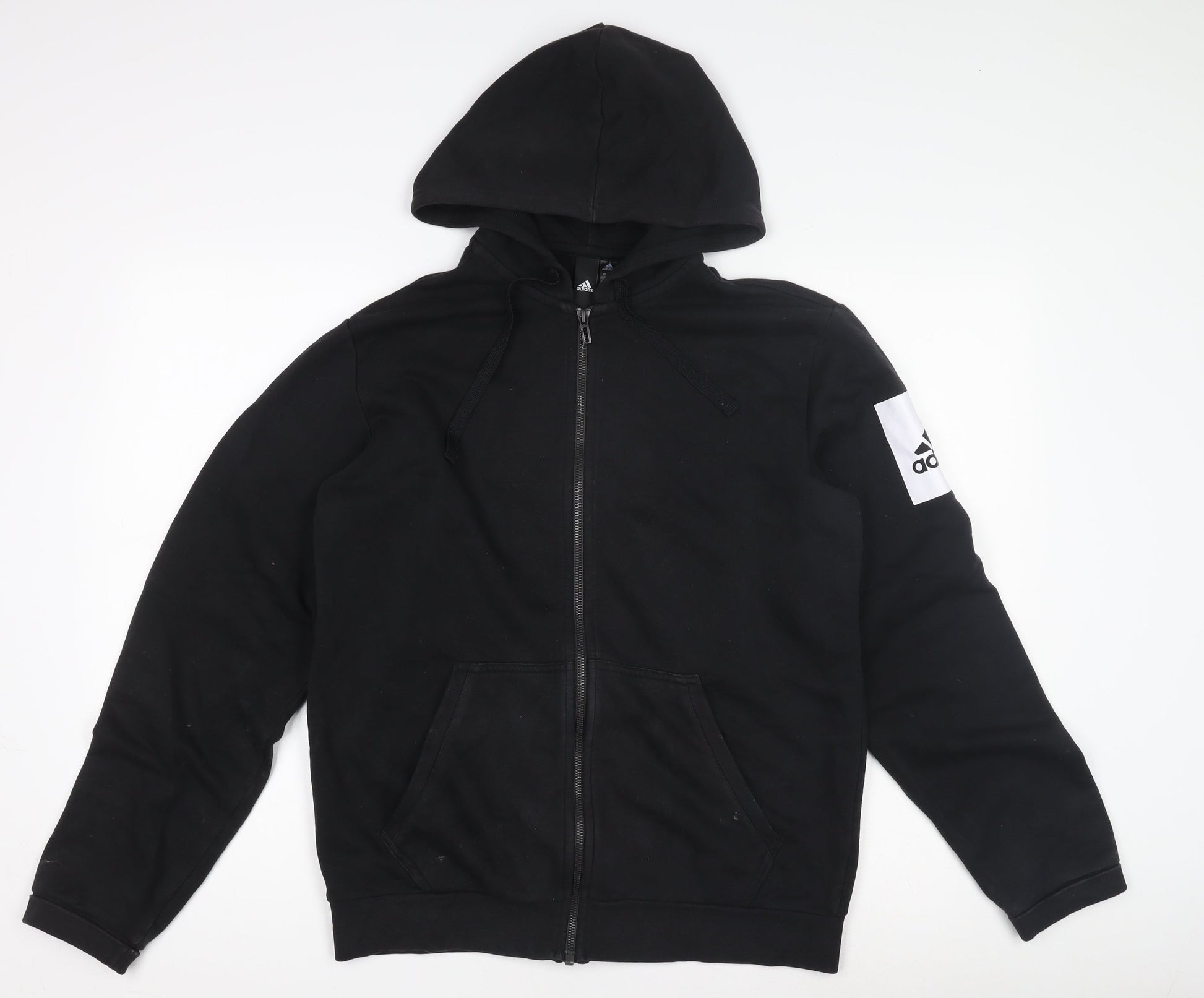 Adidas Men's Black Full Zip Hoodie with Logo - M