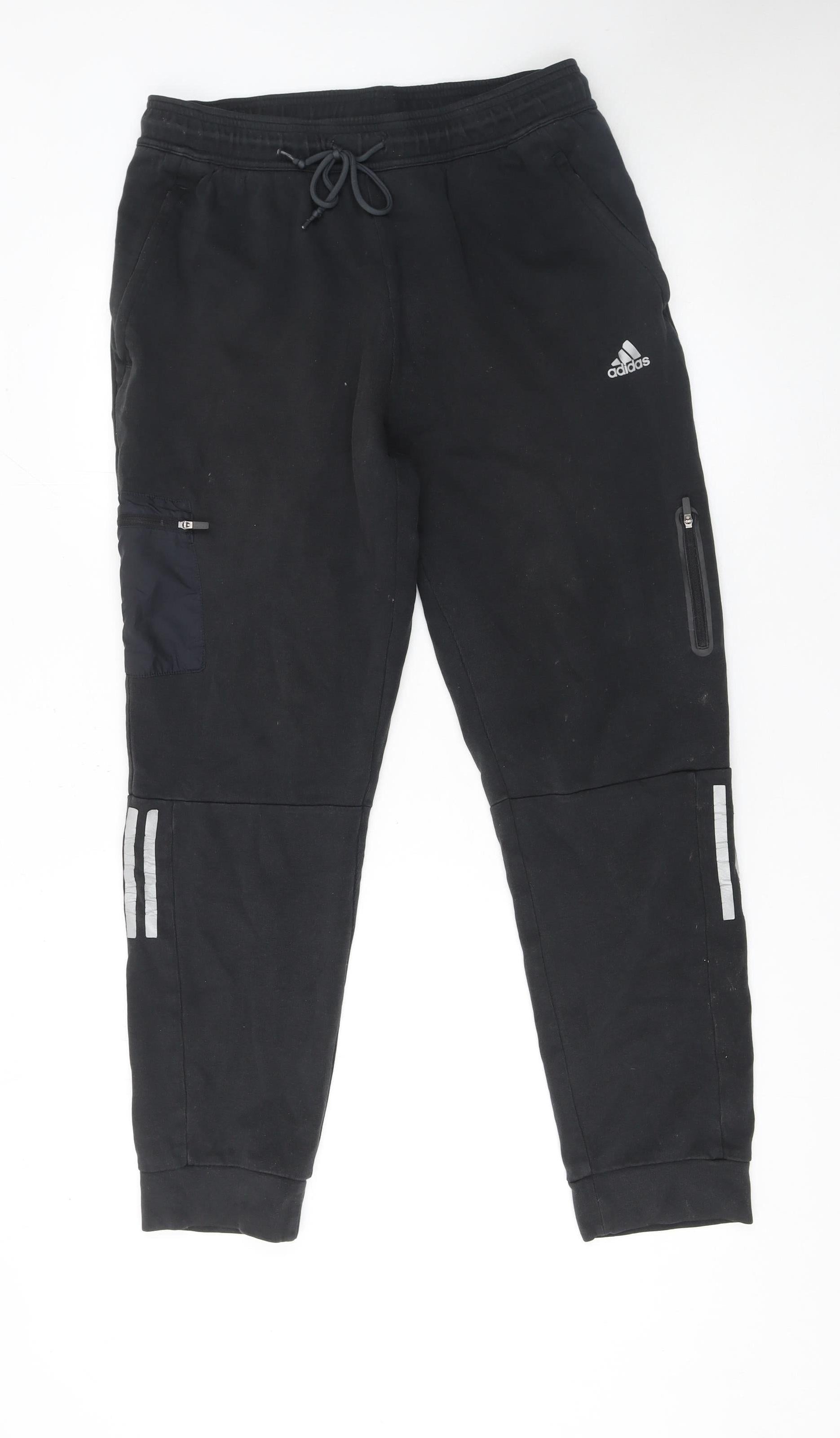 Adidas Men's Black Jogger Trousers L Cotton Polyester Reflective Trim