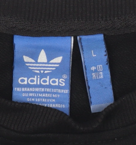 Adidas Mens Black L Pullover Sweatshirt Graphic Logo Jersey