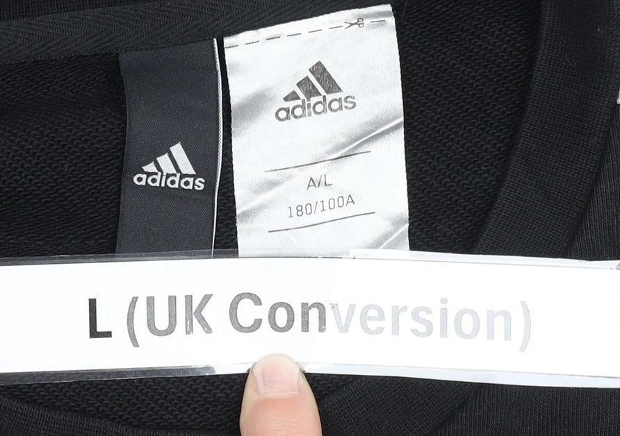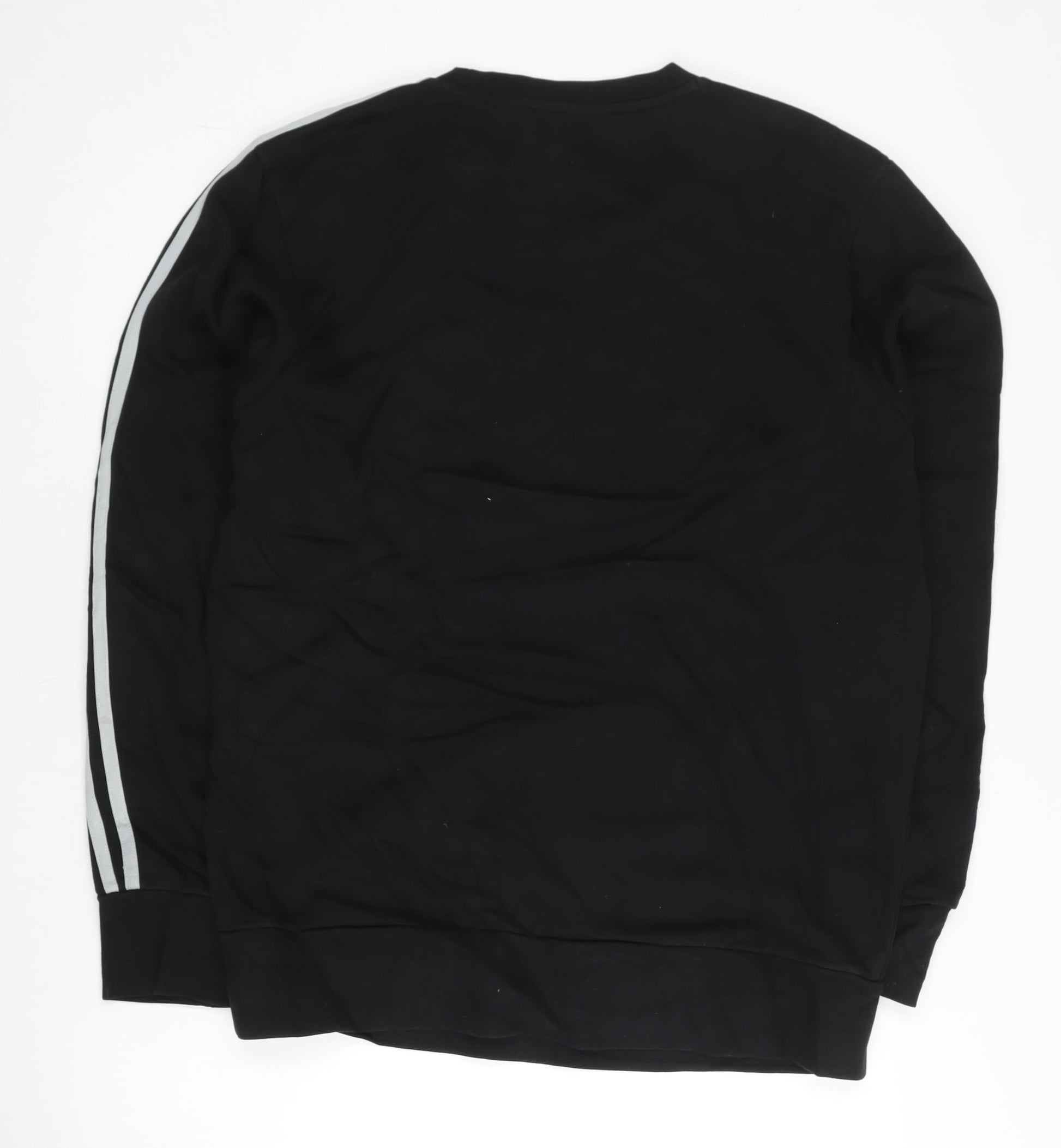 Adidas Mens Black L Sweatshirt Pullover Crew Neck Sports Stripe