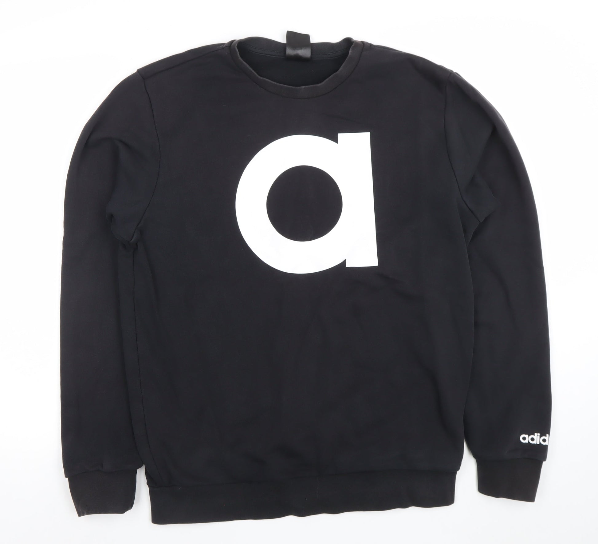 adidas Mens Black Large Logo Sweatshirt Crew Neck Long Sleeve