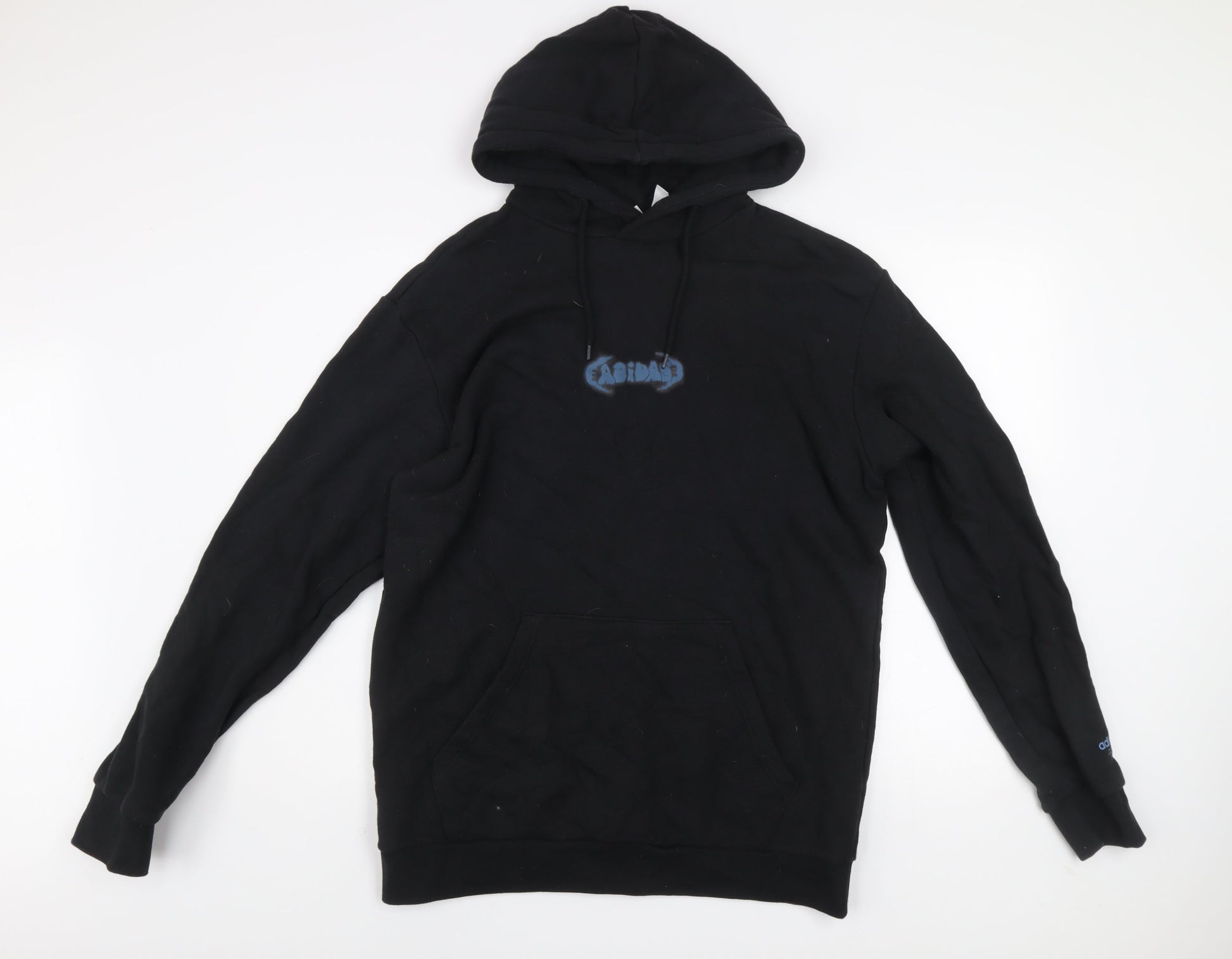 Adidas Mens Black Large Pullover Hoodie Cotton Graphic Print