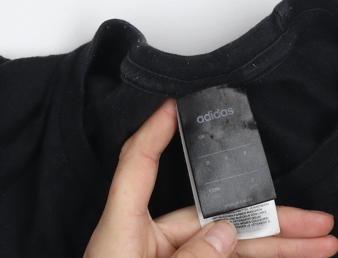 Adidas Men's Black Logo Graphic T-Shirt Size L Cotton