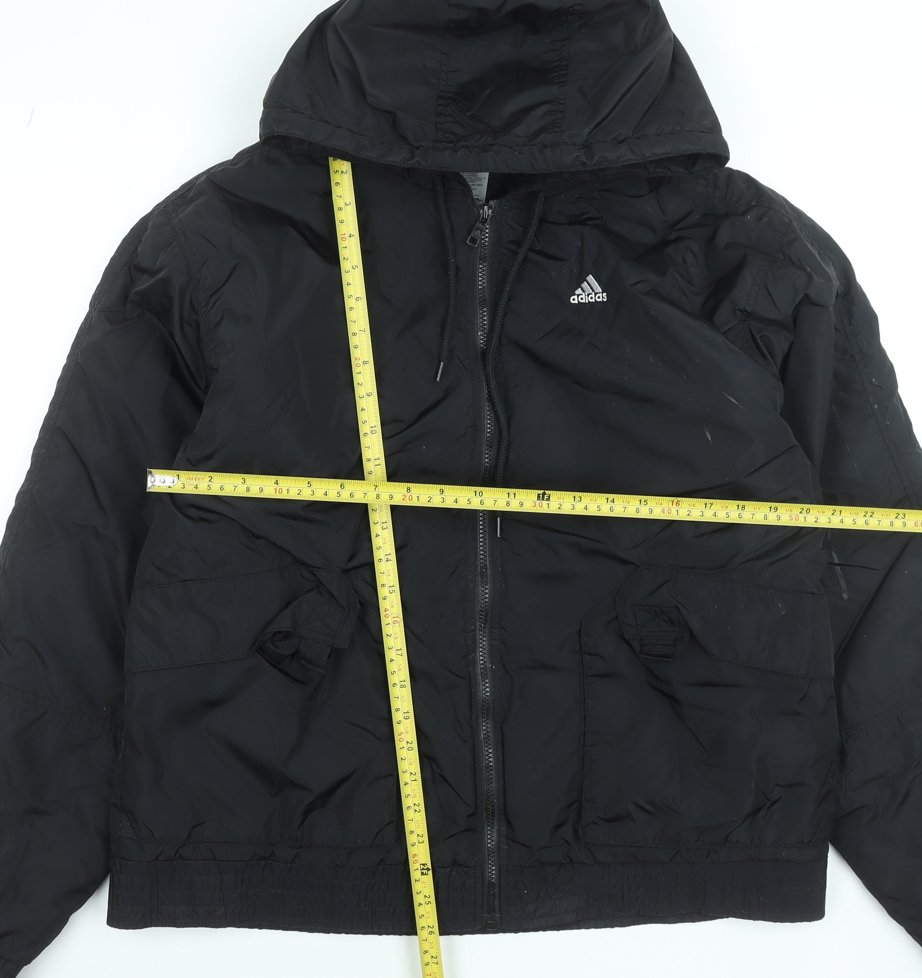 Adidas Men's Black Puffer Jacket M Hooded Full Zip Winter Coat