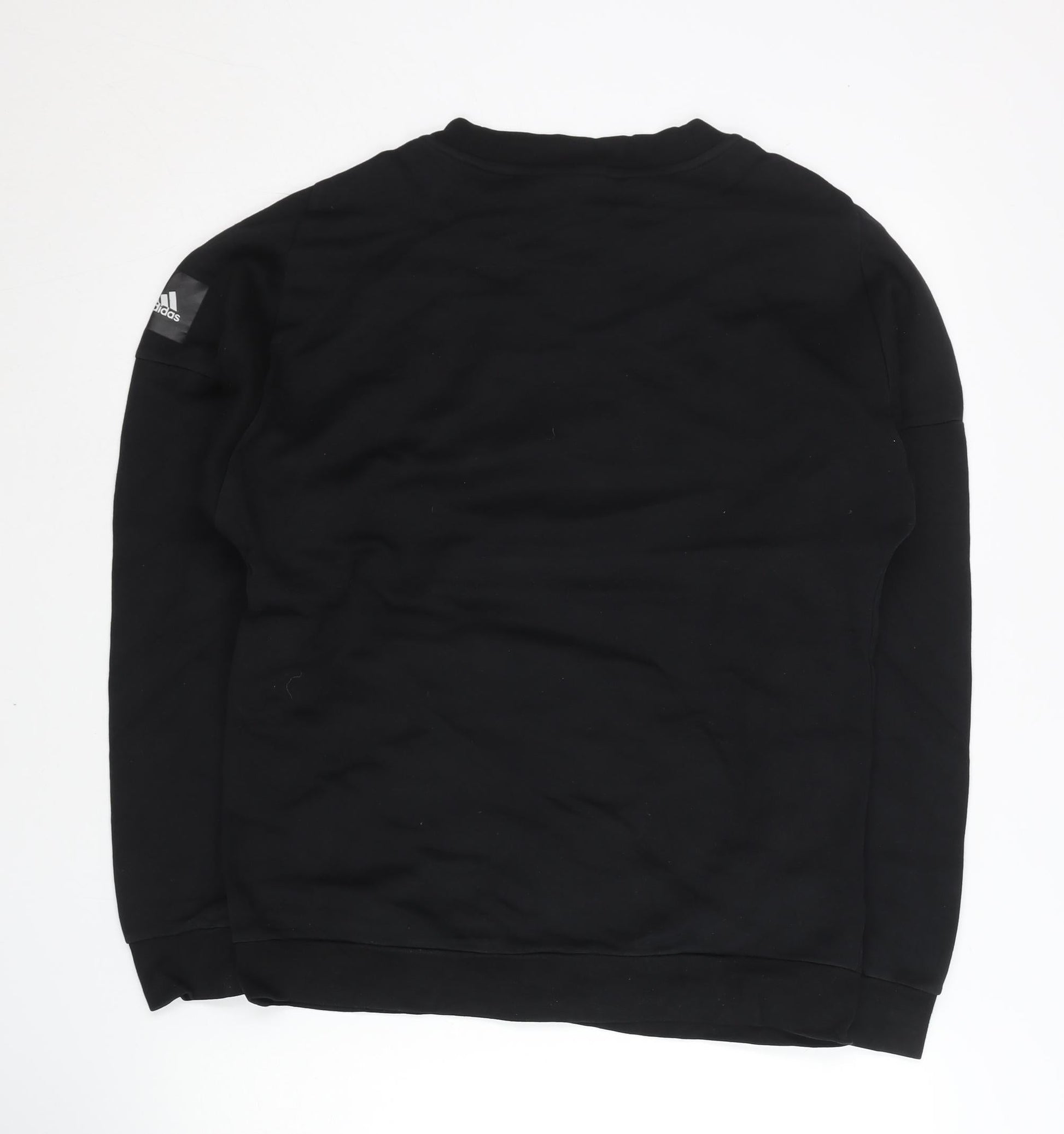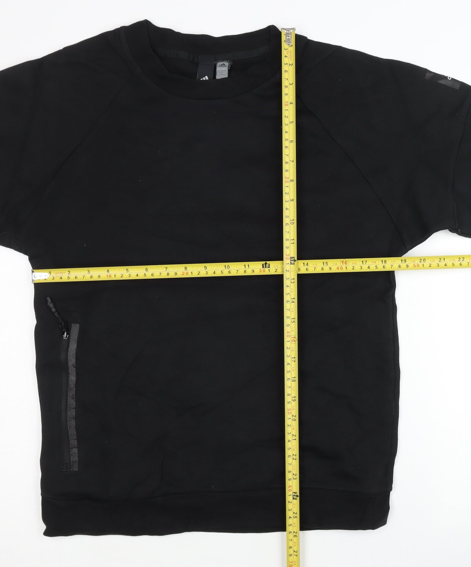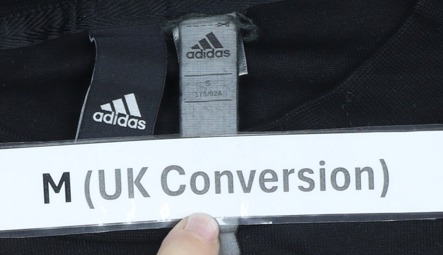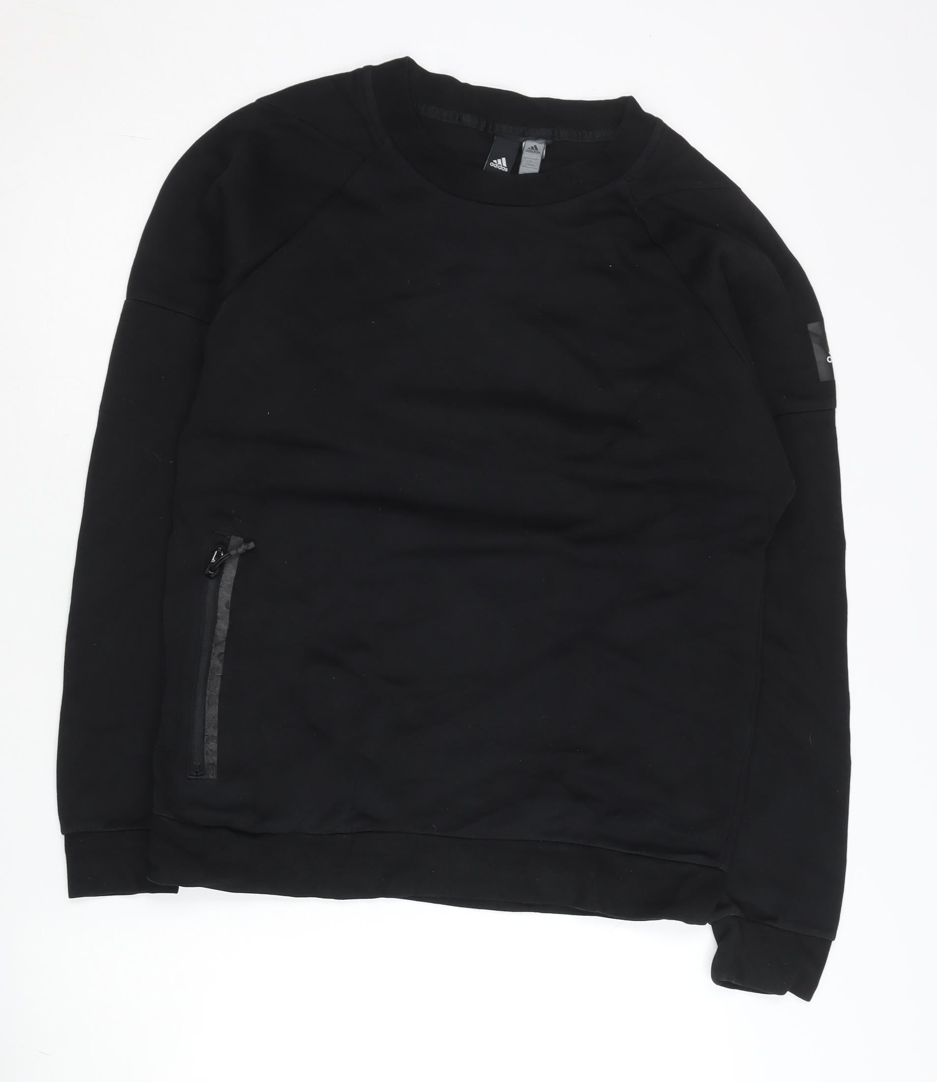 Adidas Mens Black Pullover Sweatshirt M Crew Neck Zip Pocket