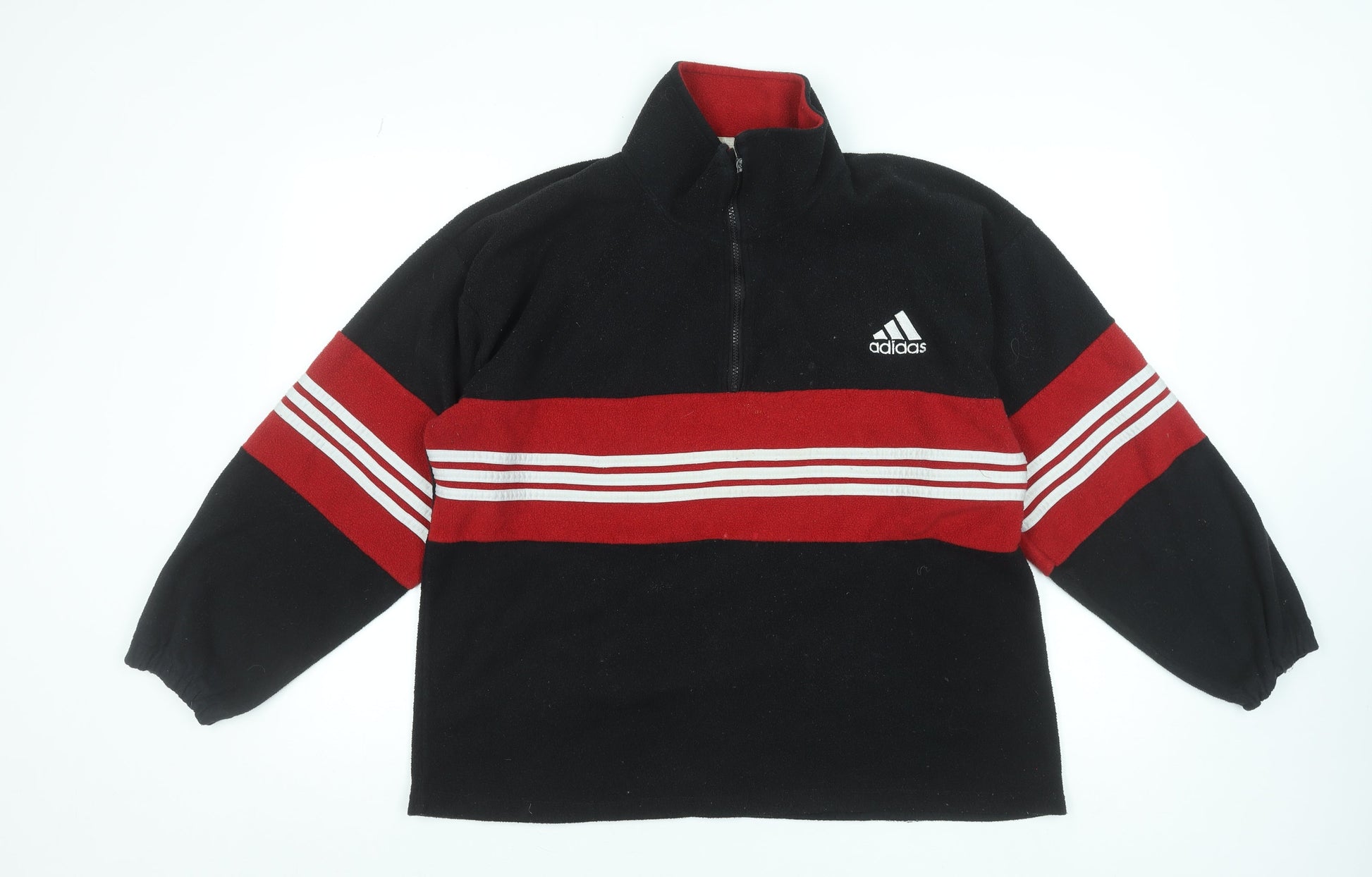Adidas Mens Black Red 1/2 Zip Fleece Sweatshirt L Sports Pullover