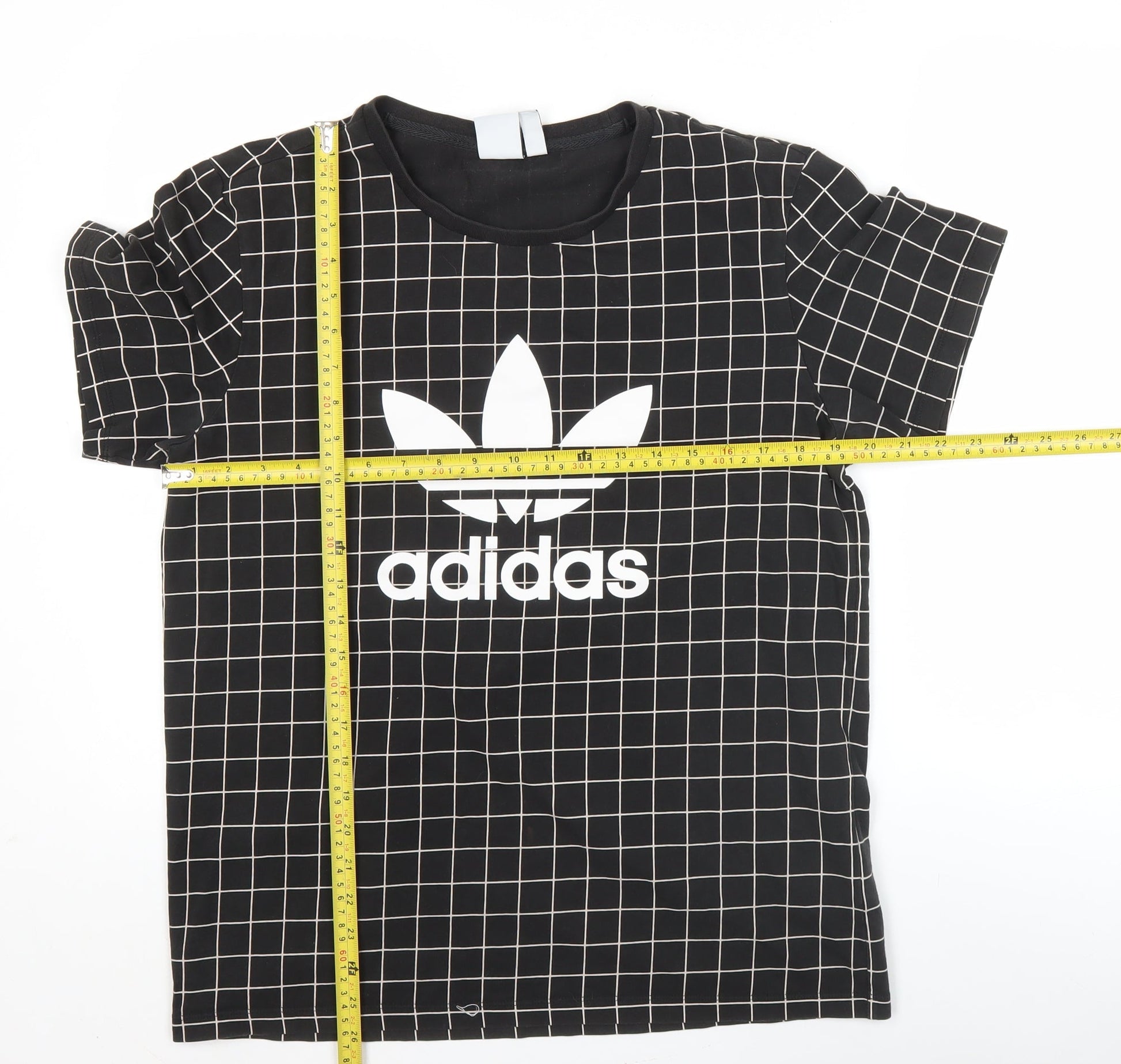 Adidas Men's Black Small Check Logo Graphic Cotton T-Shirt