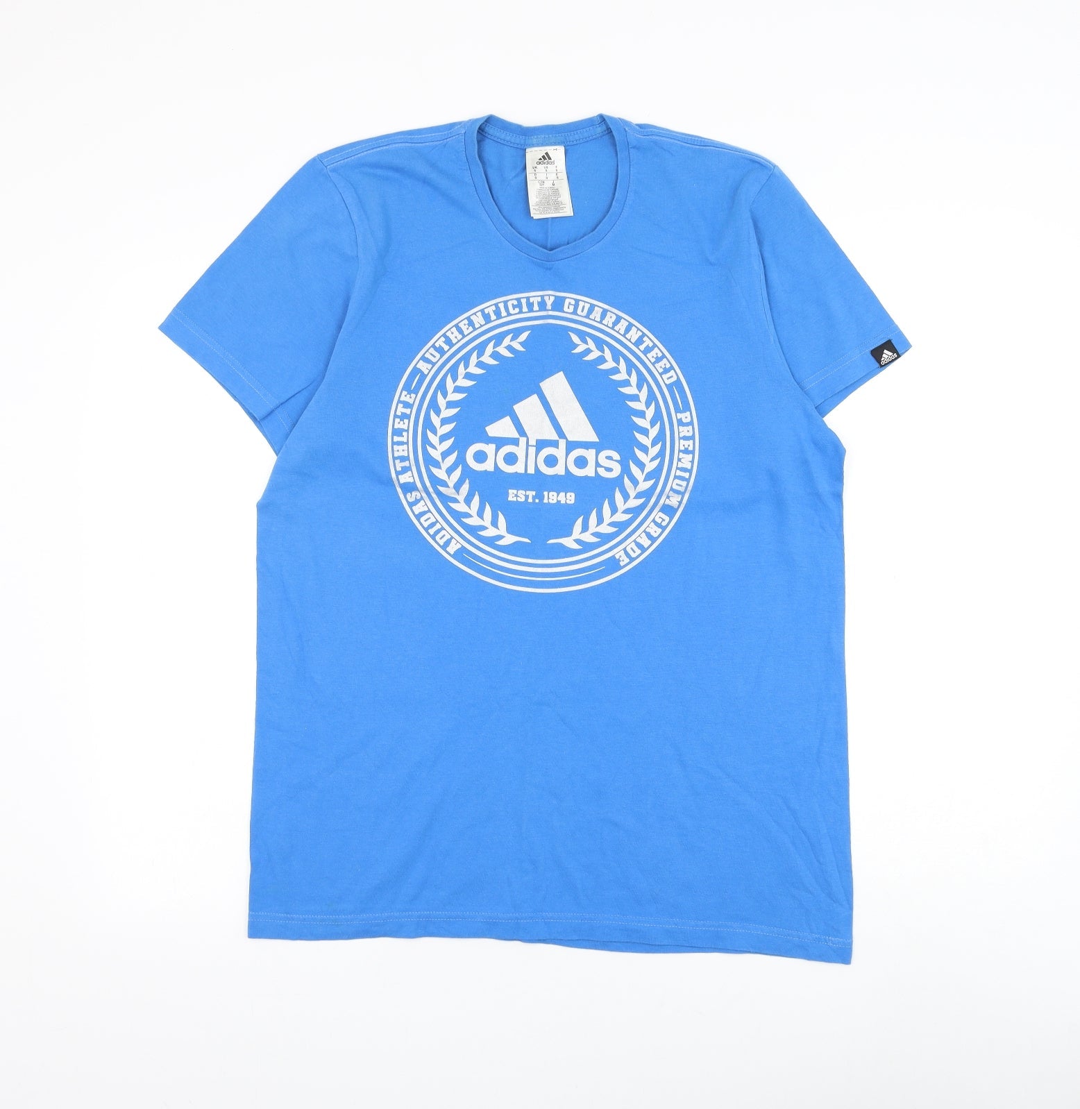 adidas Mens Blue Cotton T-Shirt Size S Round Neck