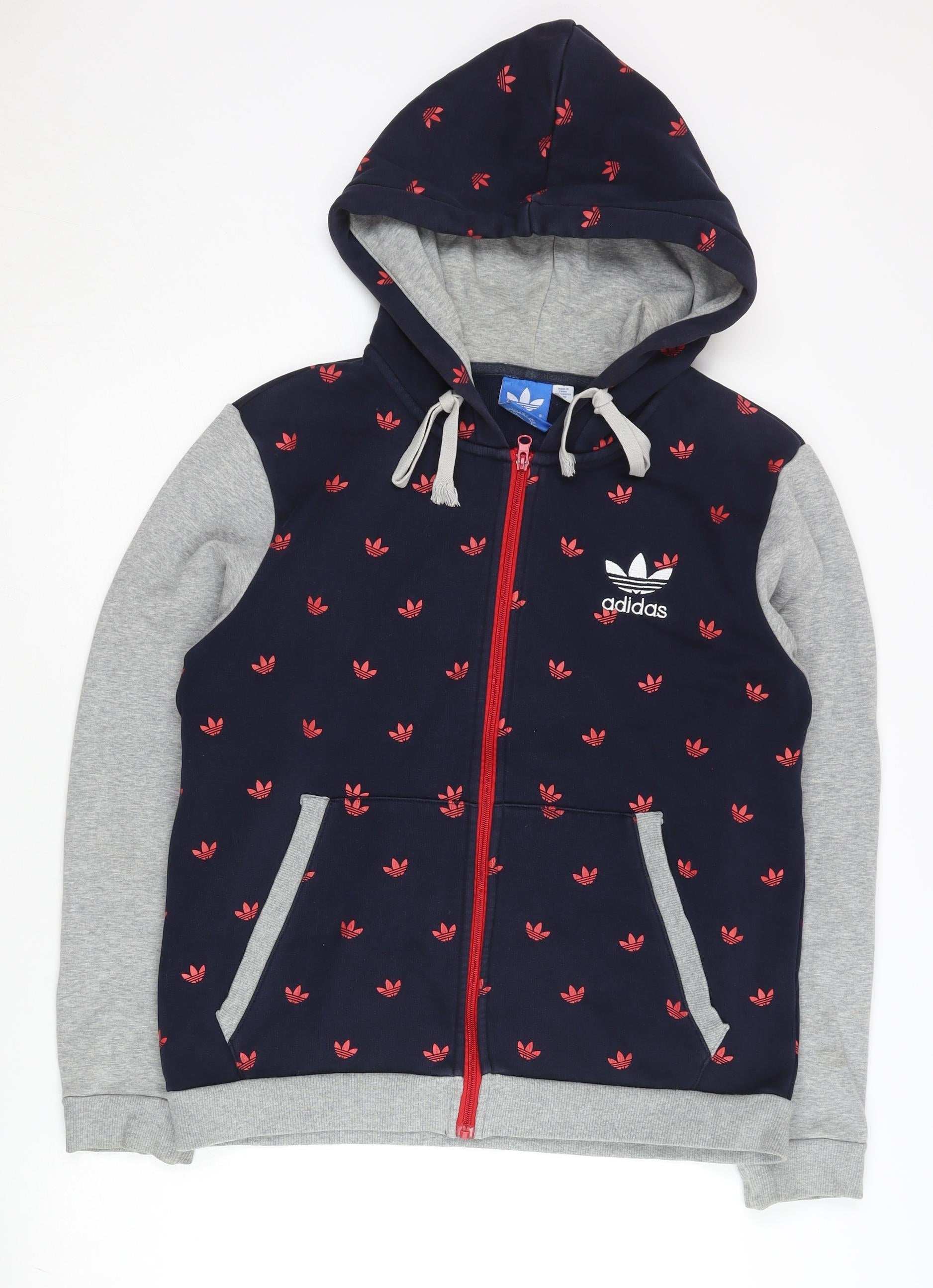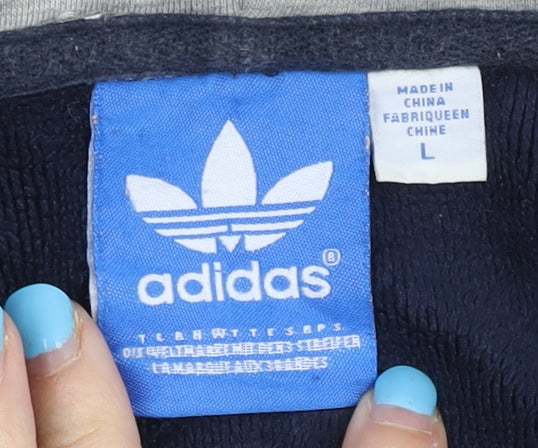 Adidas Mens Blue Full Zip Hoodie L Sports Logo Graphic Print