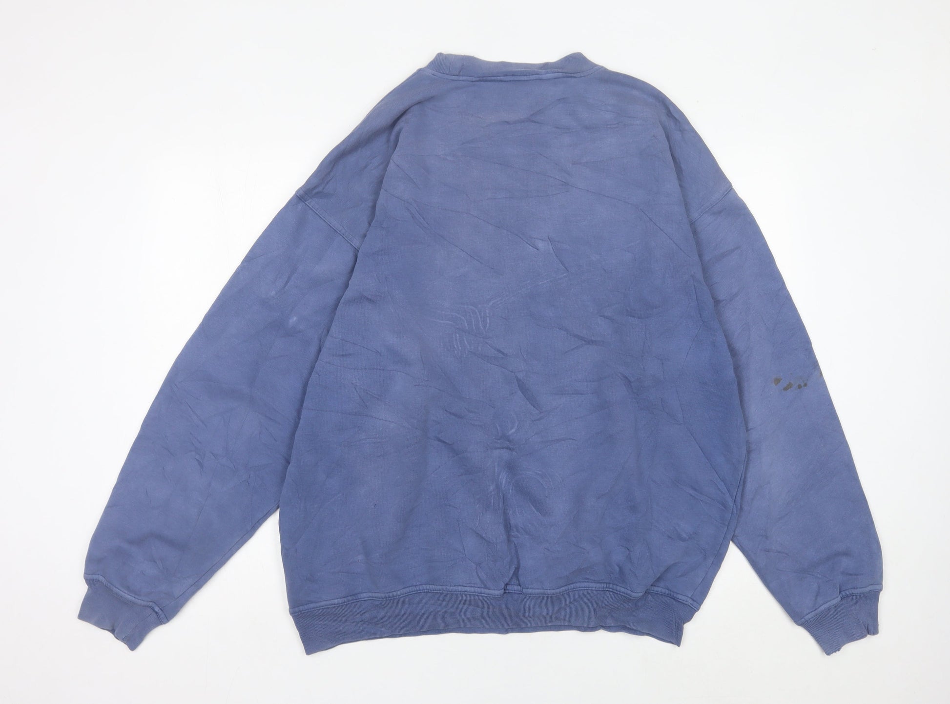 Adidas Mens Blue Logo Pullover Sweatshirt Size L Crew Neck