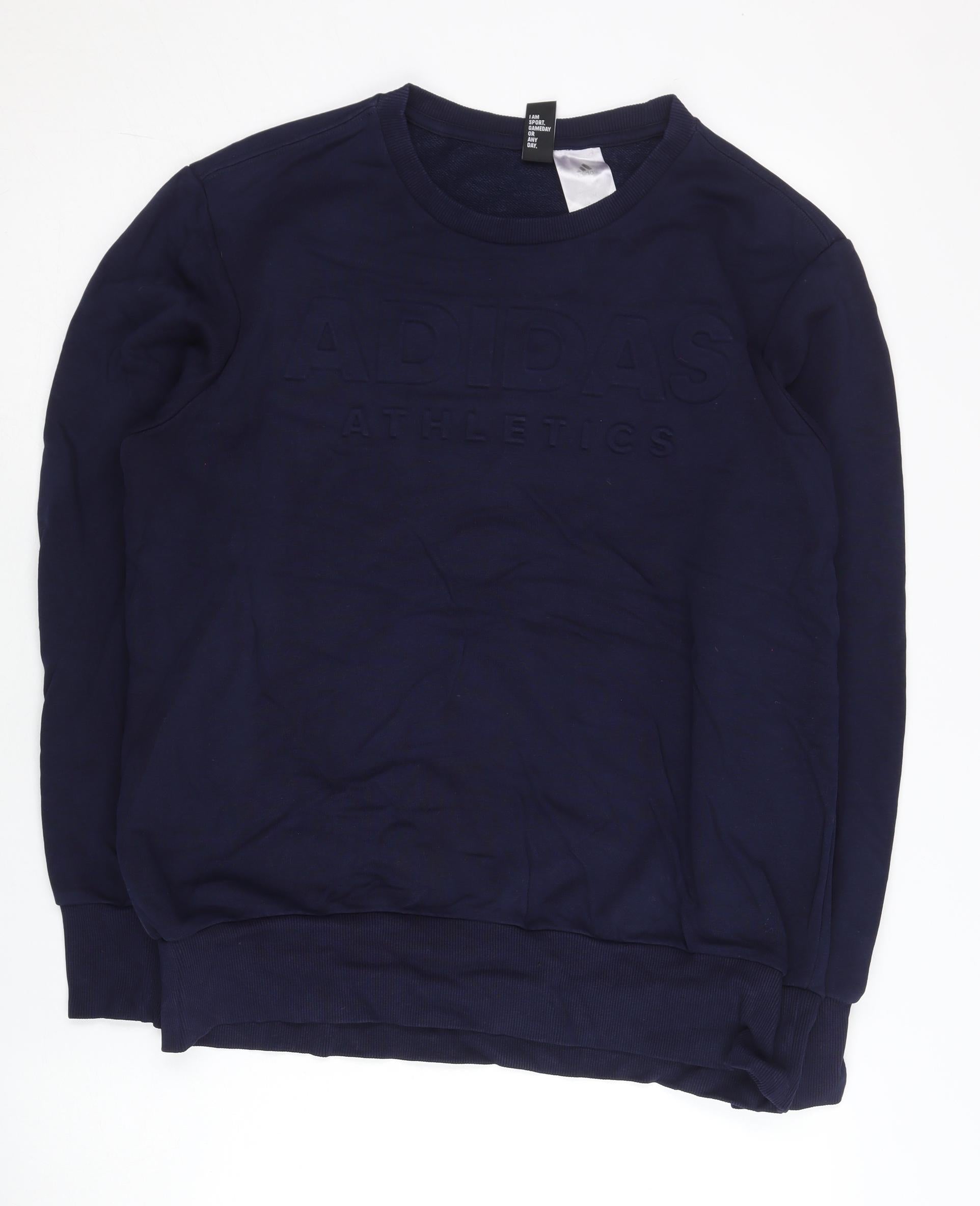 Adidas Mens Blue Medium Pullover Sweatshirt Crew Neck Logo