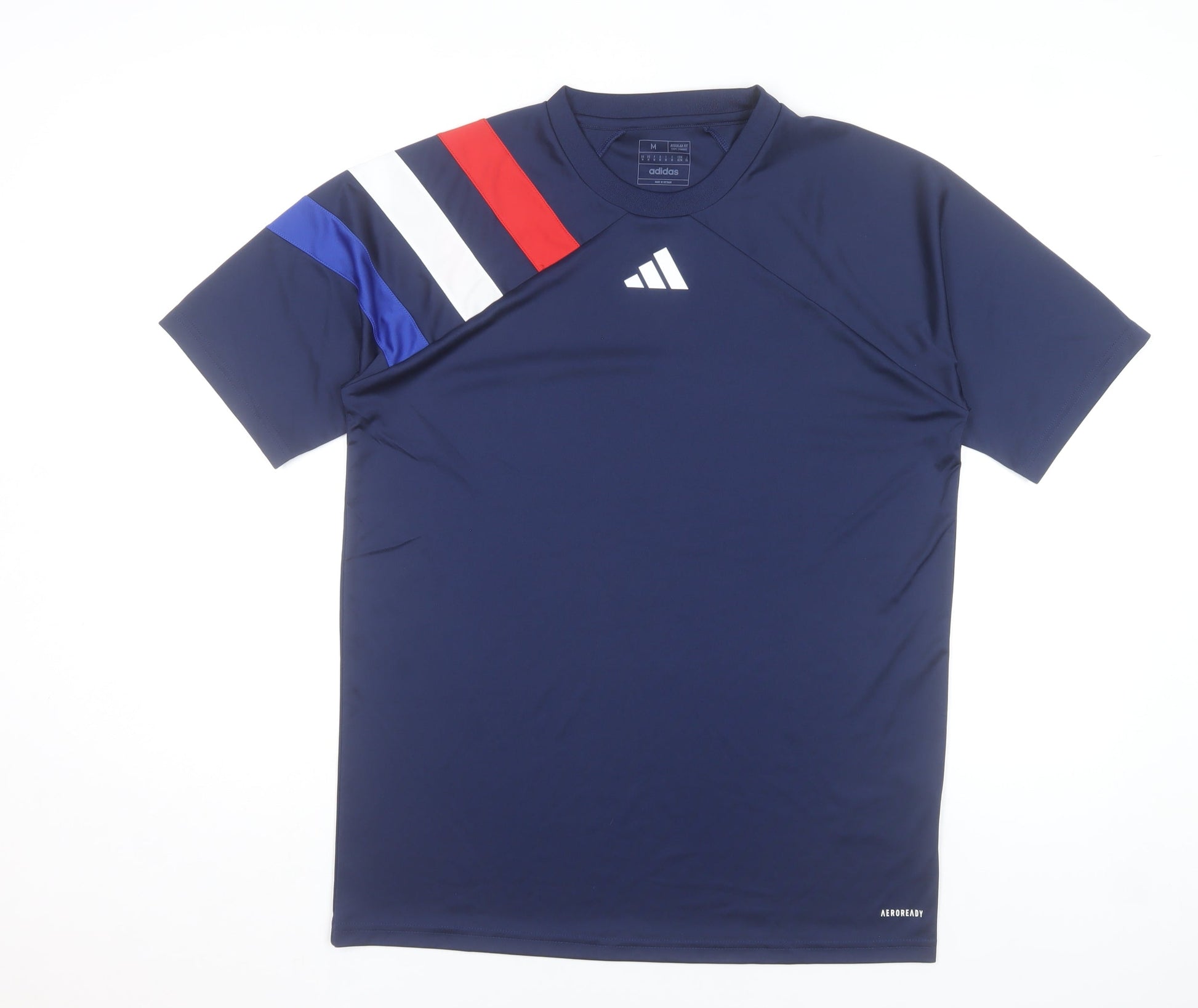 Adidas Men's Blue Regular Fit Colourblock Sports T-Shirt M
