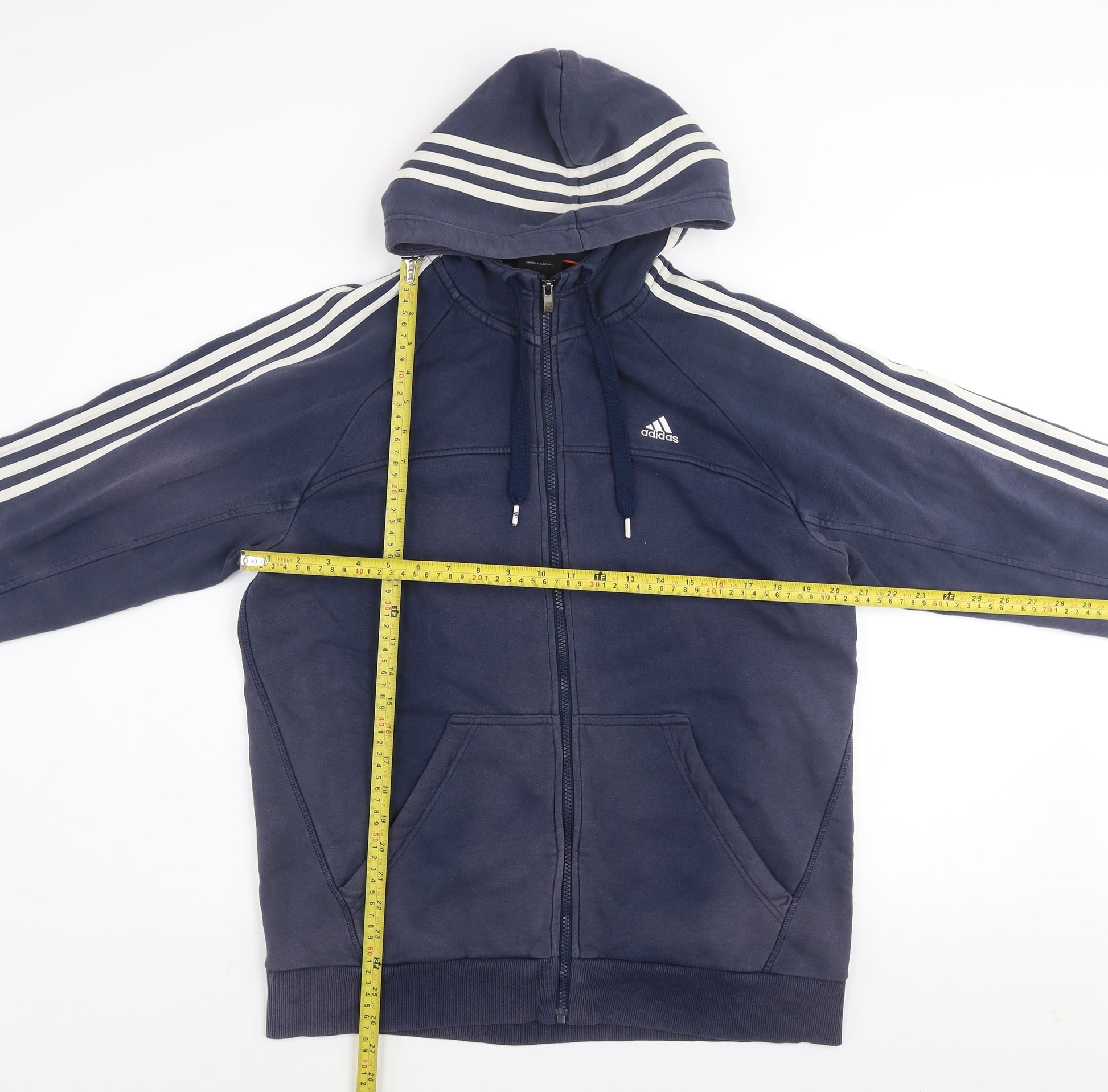 Adidas Men's Blue Size L Track Jacket Hooded Full Zip Cotton Blend