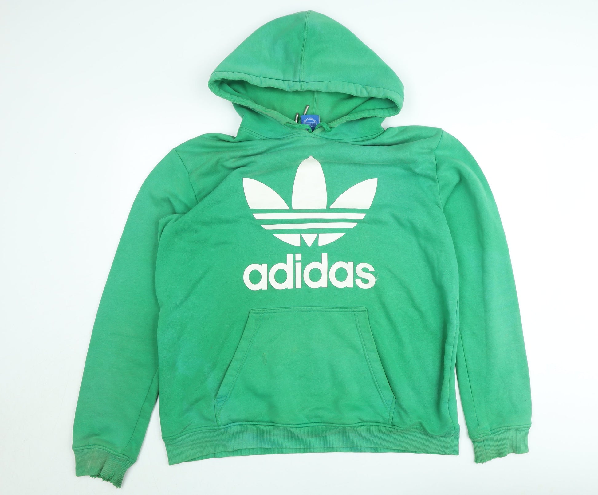 Adidas Men's Green Pullover Hoodie Size L Trefoil Logo Sweatshirt