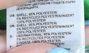 - Material Breakdown: 95% Polyester 5% Recycled Polyester