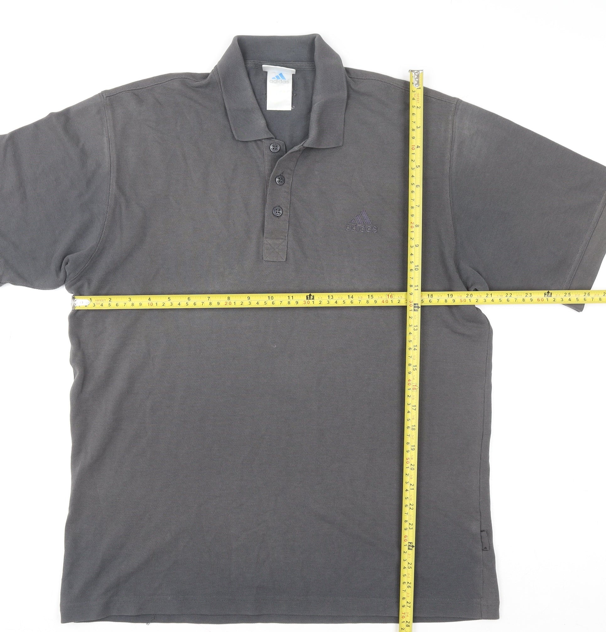 Adidas Men's Grey Cotton Blend Short Sleeve Polo Shirt L