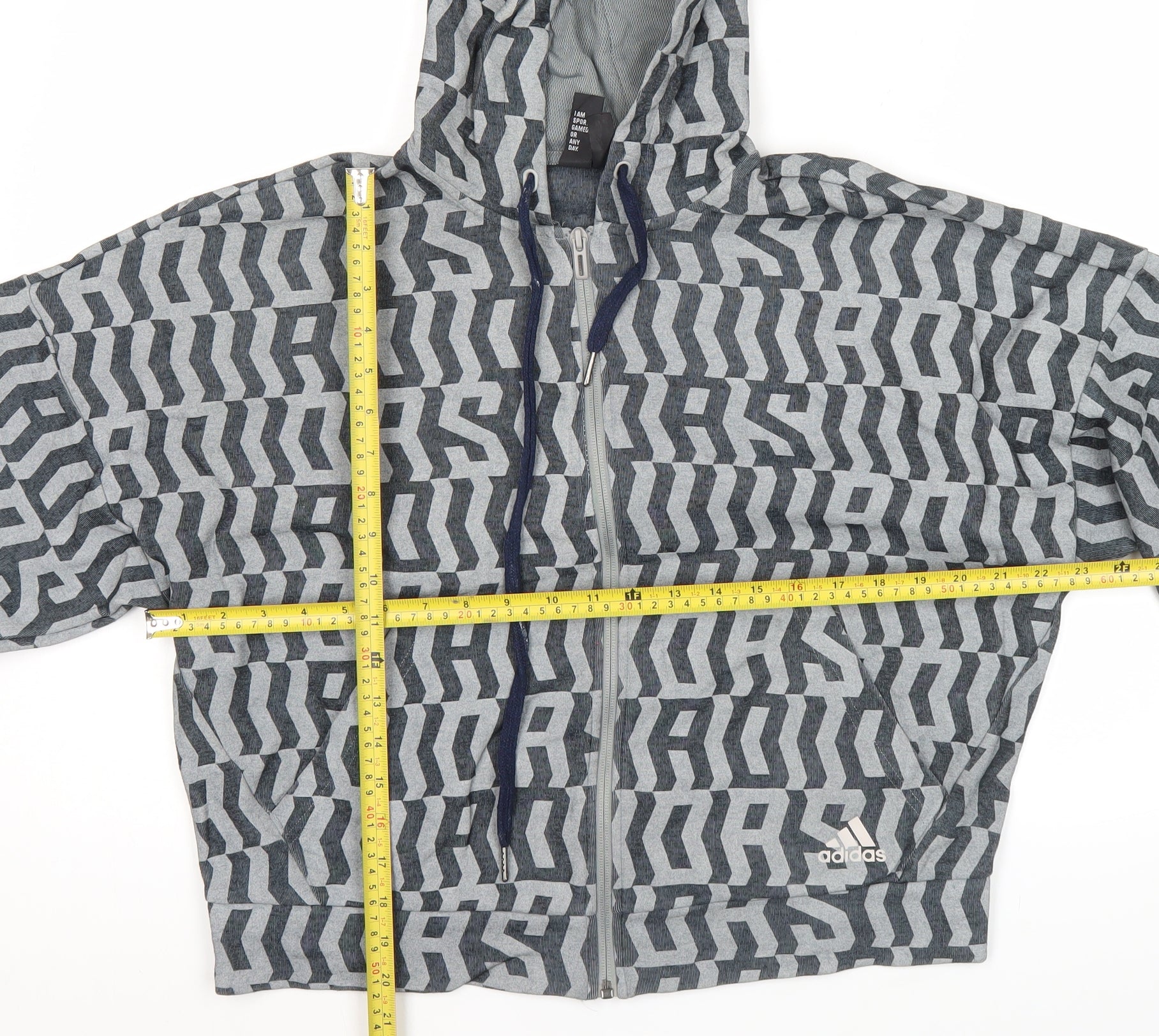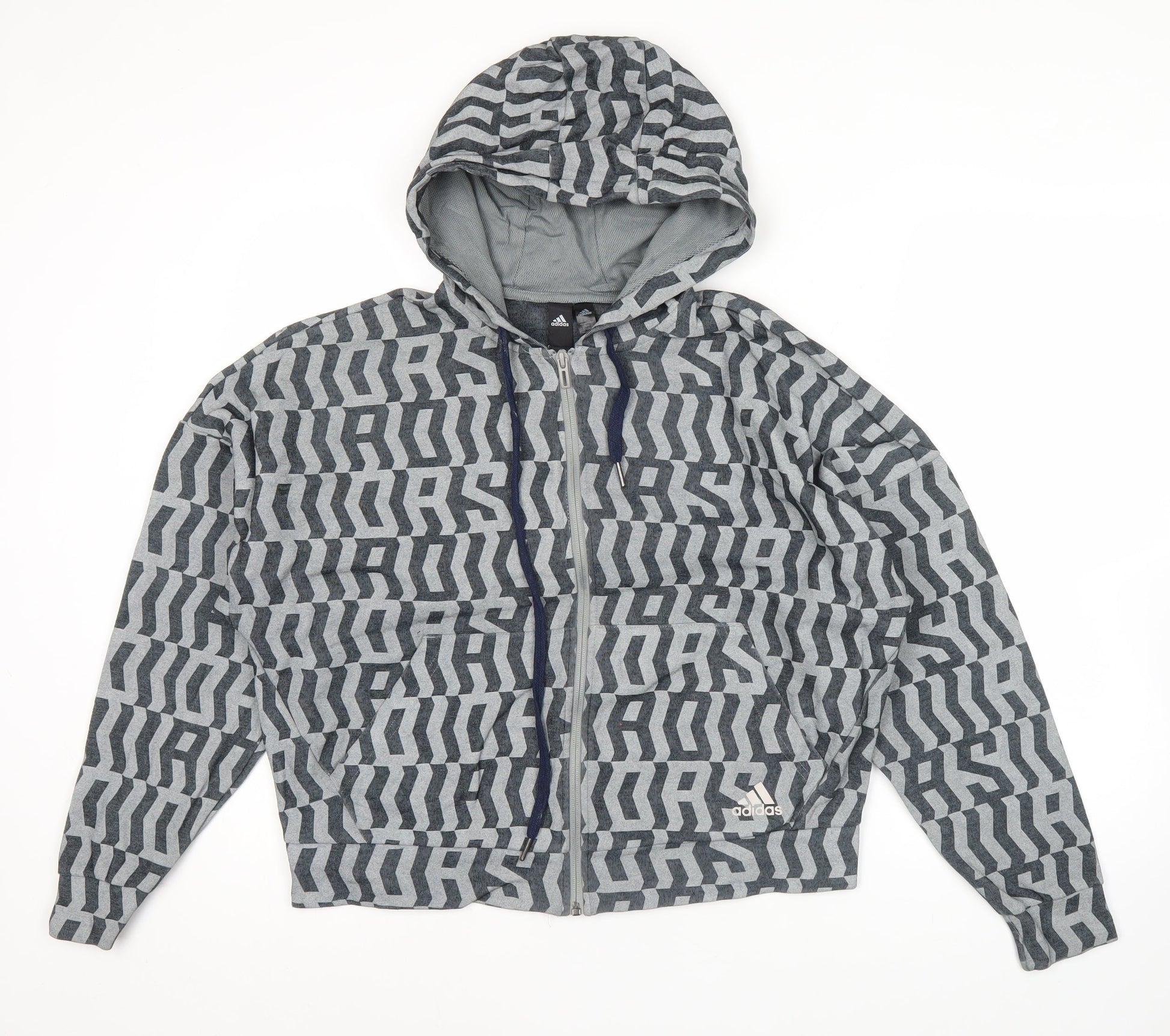 Adidas Mens Grey Graphic Full Zip Hoodie Jacket Size S Regular Fit