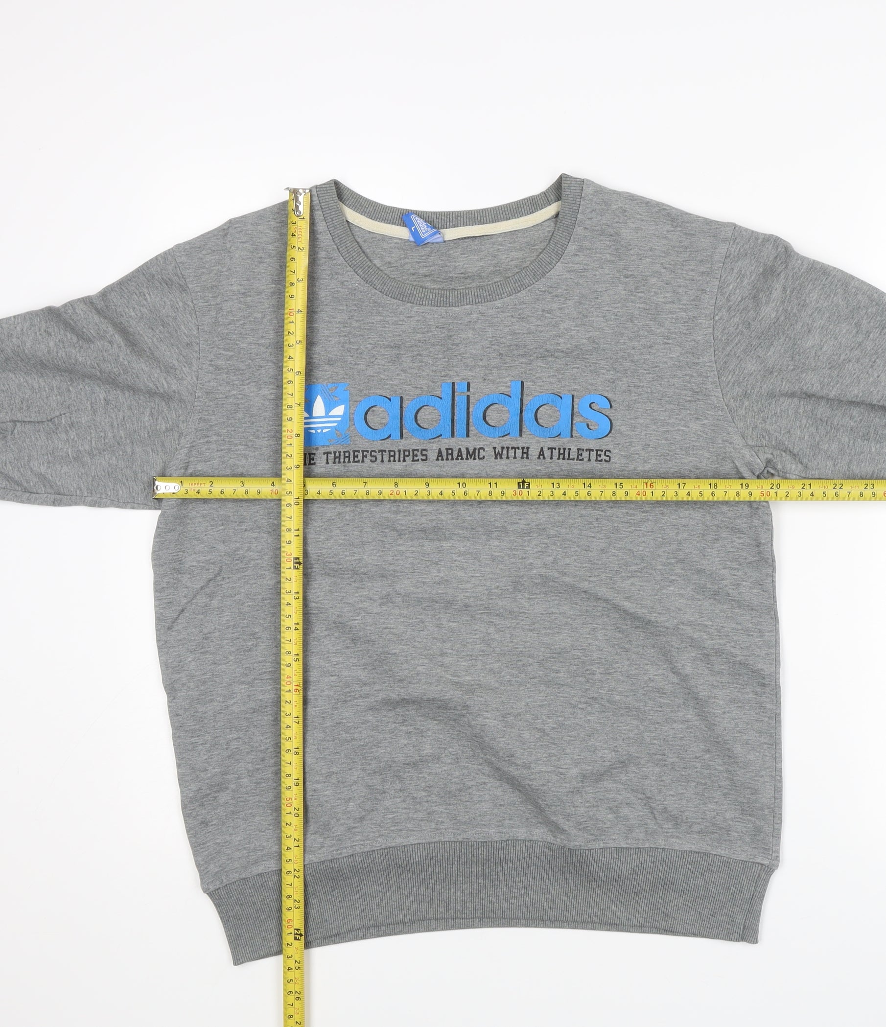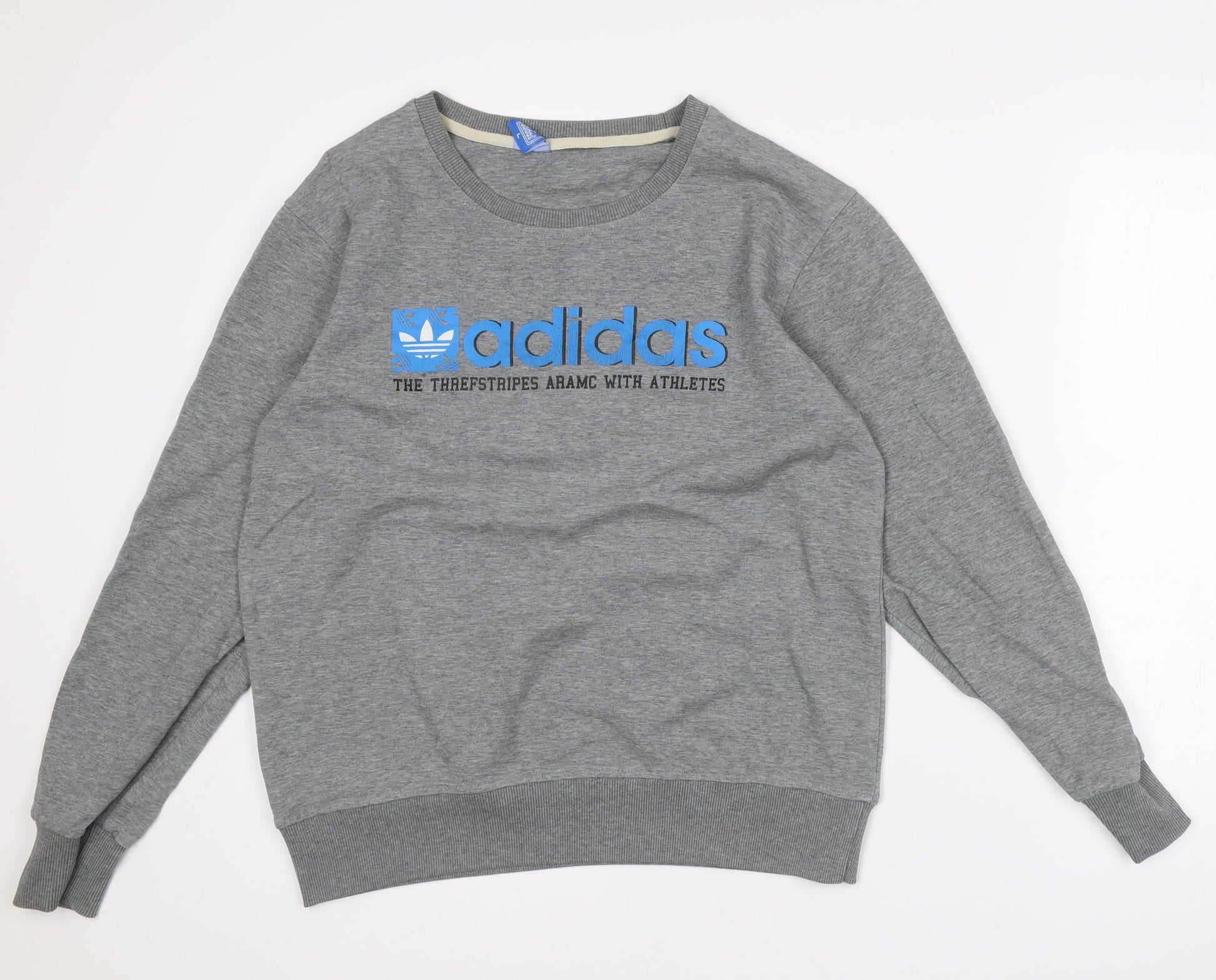 Adidas Mens Grey L Sweatshirt Pullover Crew Neck Logo Sportswear