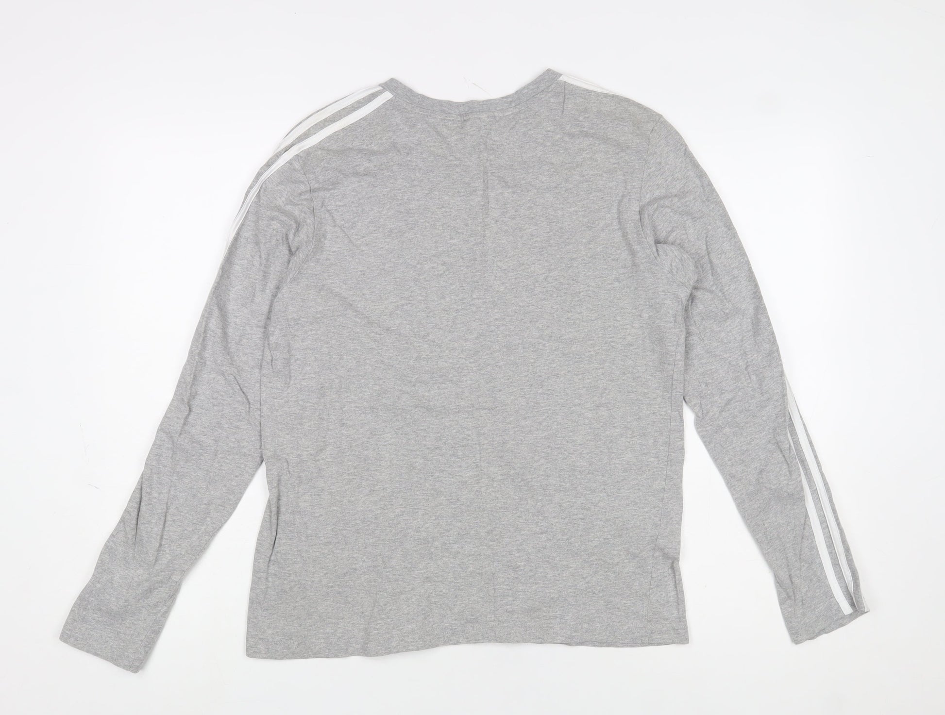 Adidas Mens Grey Long Sleeve Crew Neck Cotton Sports Top Size L
