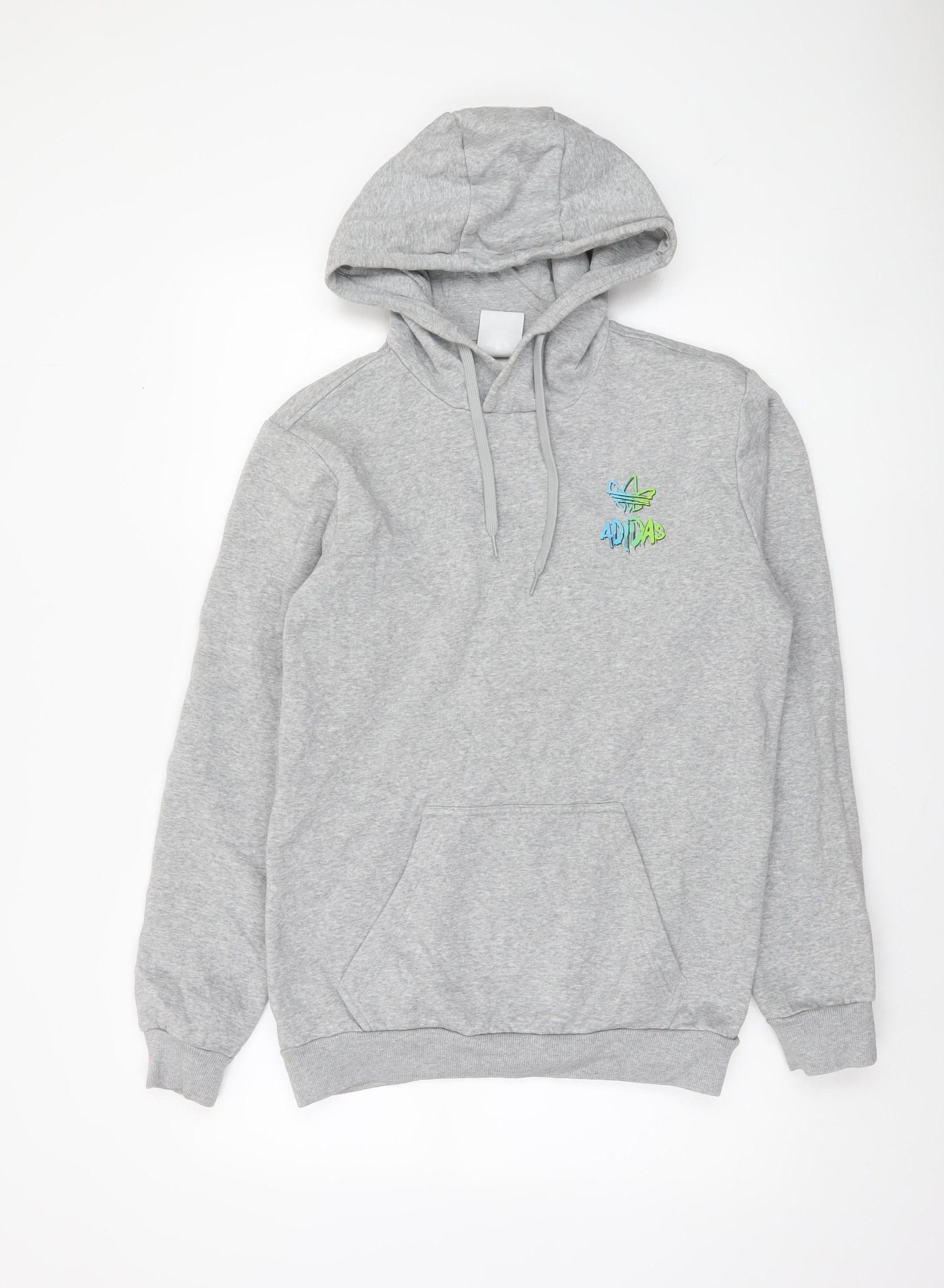 Adidas Men's Grey Pullover Hoodie S Logo Graphic Fleece Sweatshirt