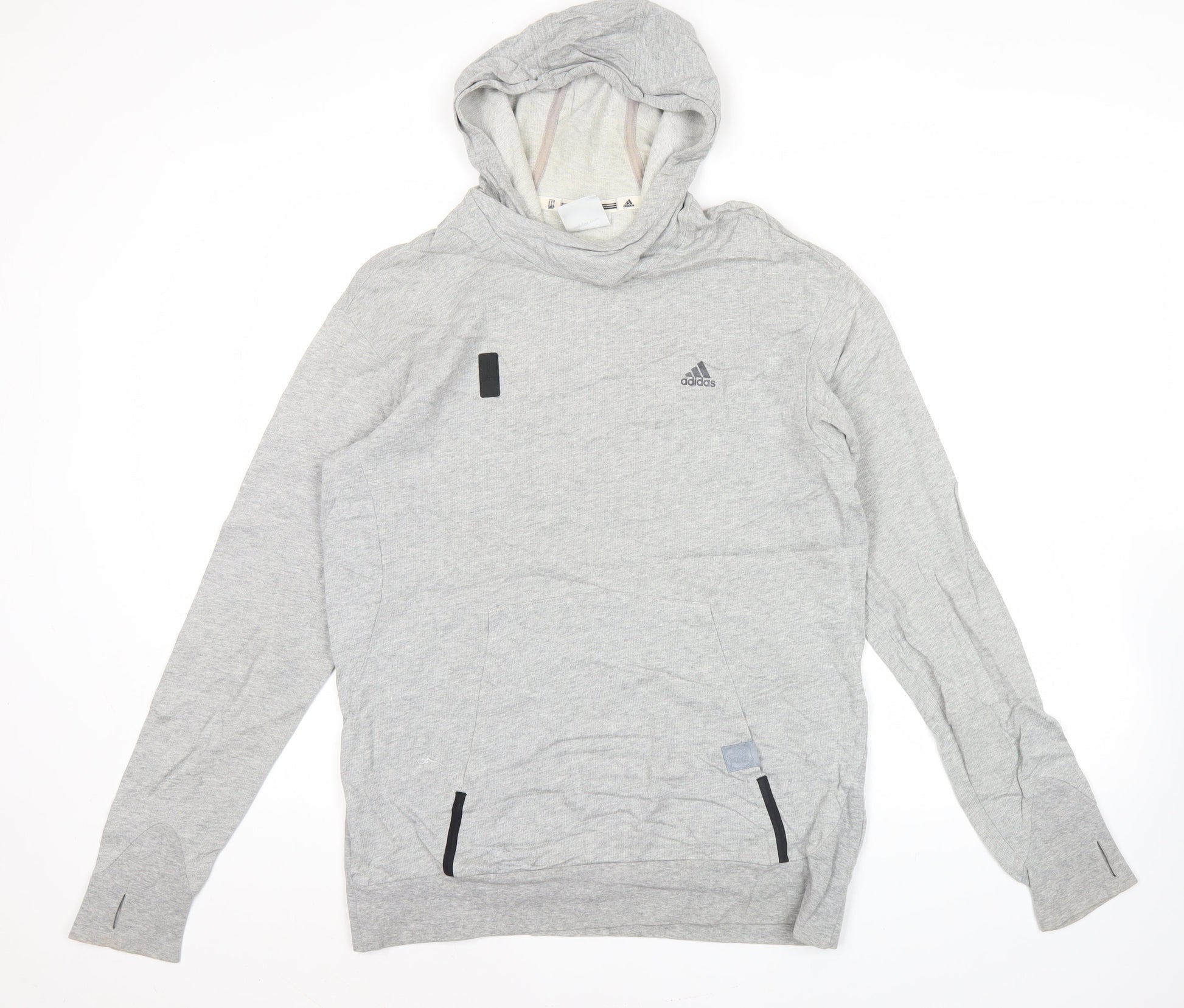 Adidas Mens Grey Pullover Hoodie Size L Regular Fit Lightweight