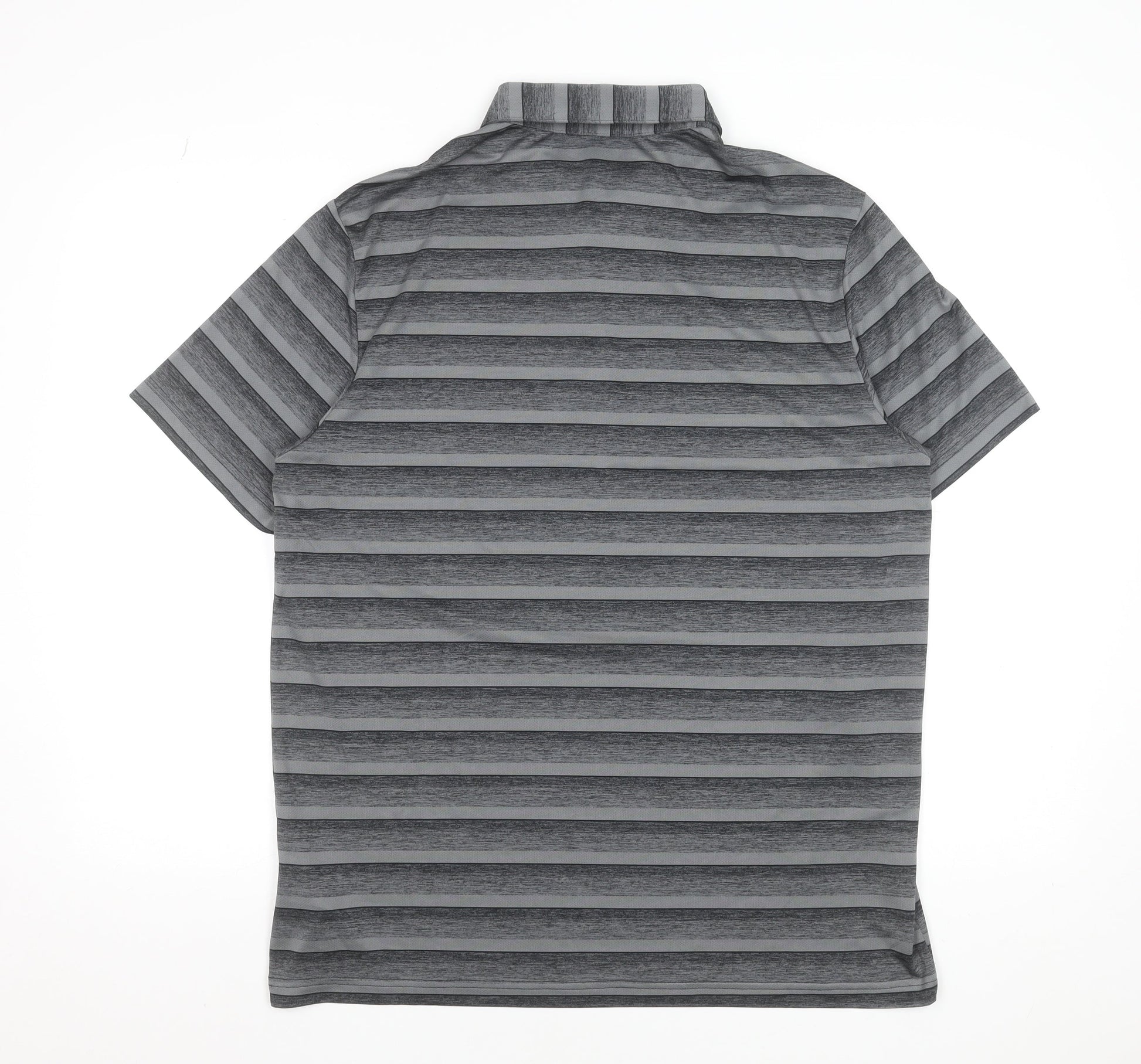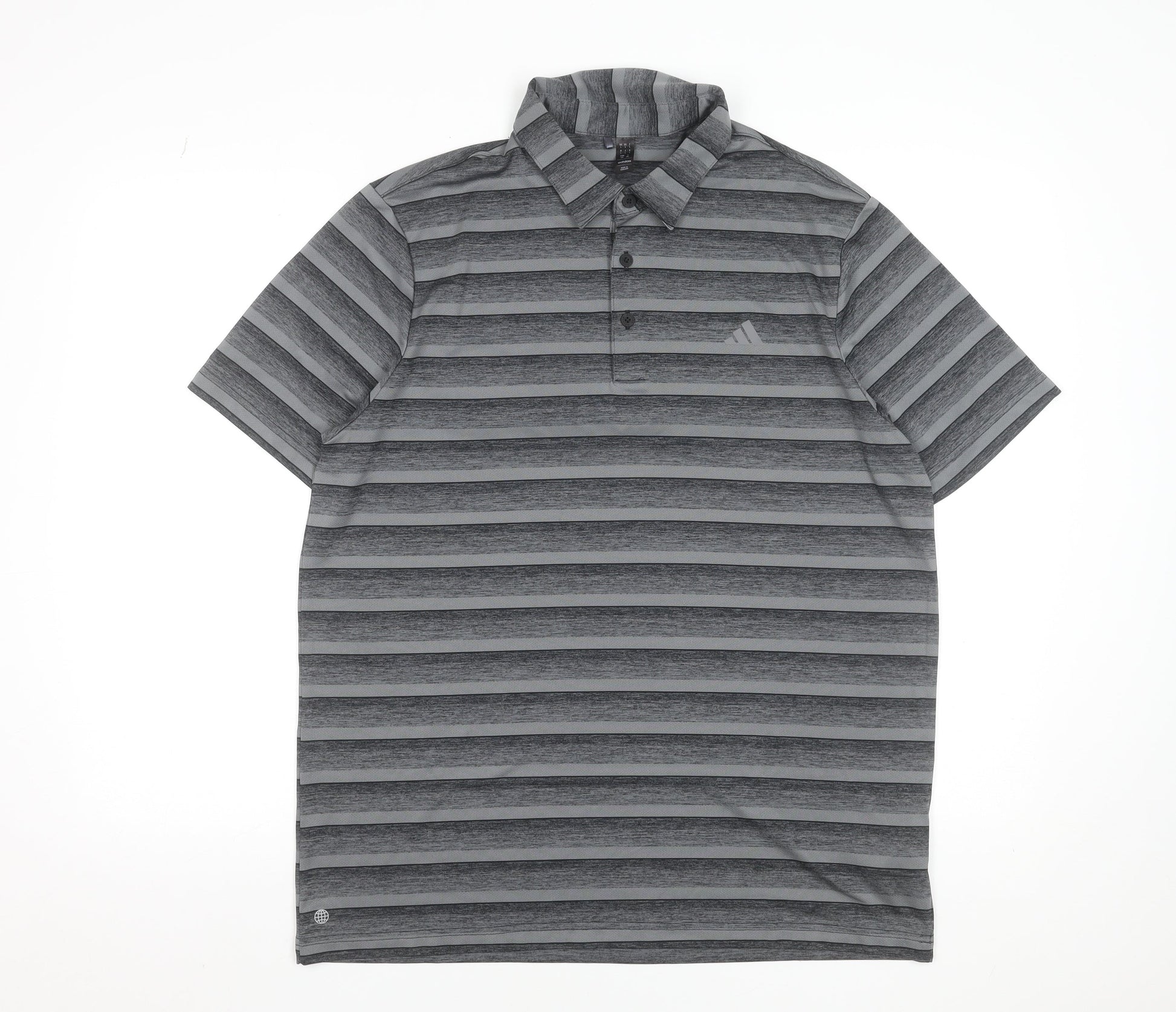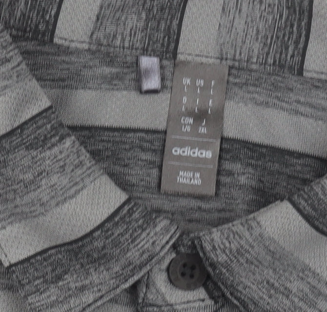 Adidas Men's Grey Striped Polo Shirt 2XL Short Sleeve Performance Fit